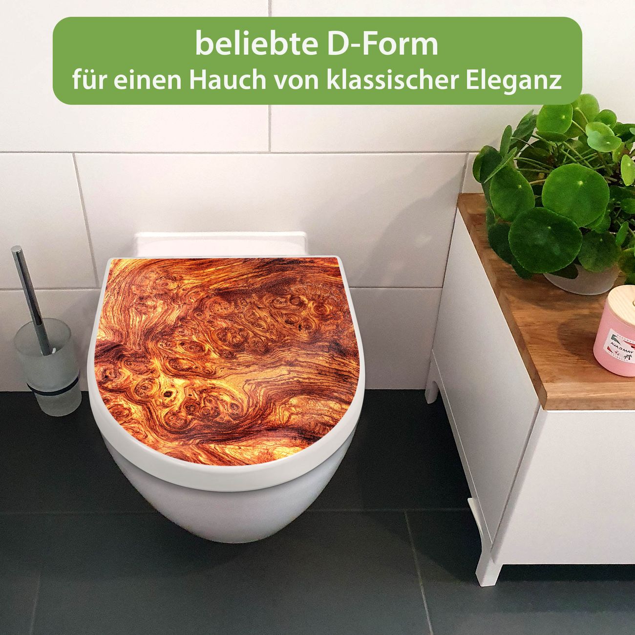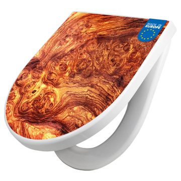WC Sitz mit Absenkautomatik D Form Motiv Holz Gemasert Afzelia