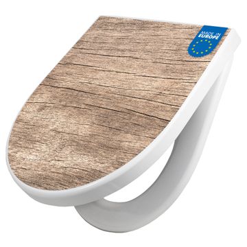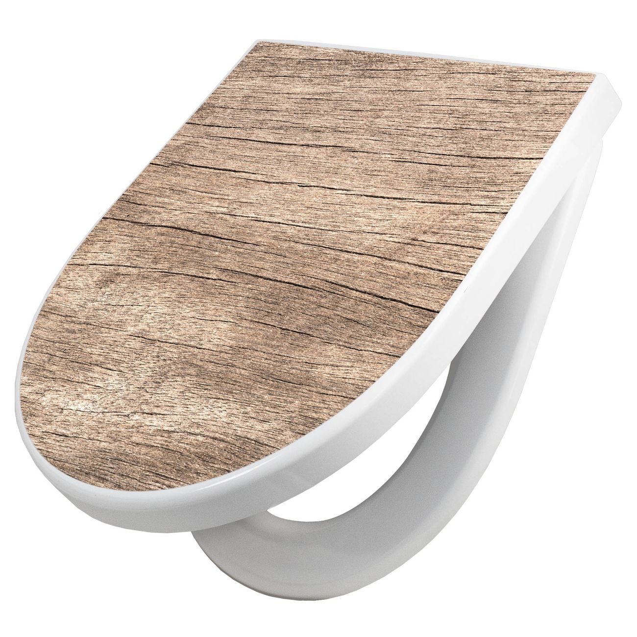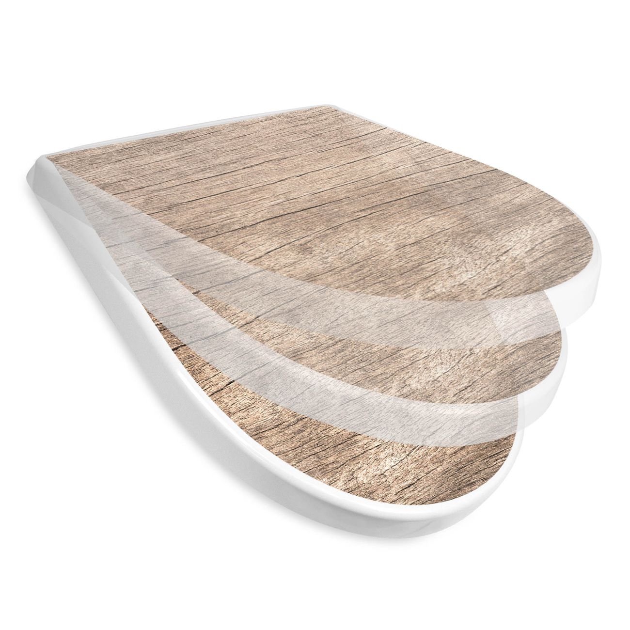 WC Sitz mit Absenkautomatik D Form Motiv Holz Struktur Warmgrau