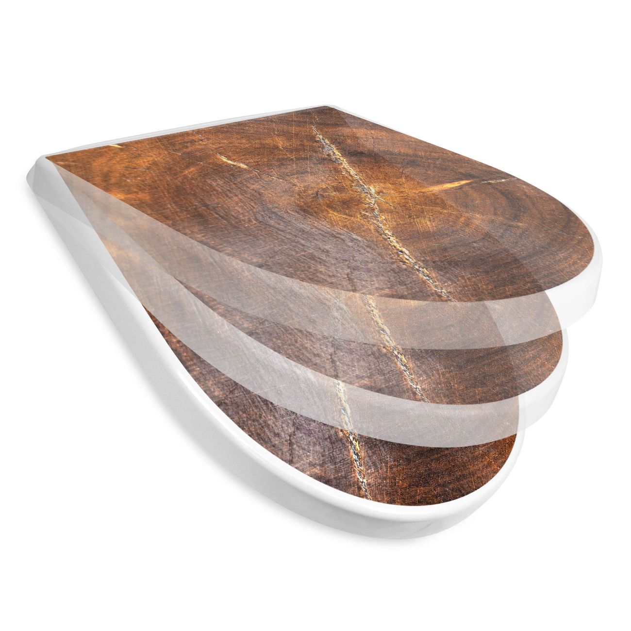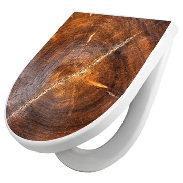 WC Sitz mit Absenkautomatik D Form Motiv Holzring mit Rissen