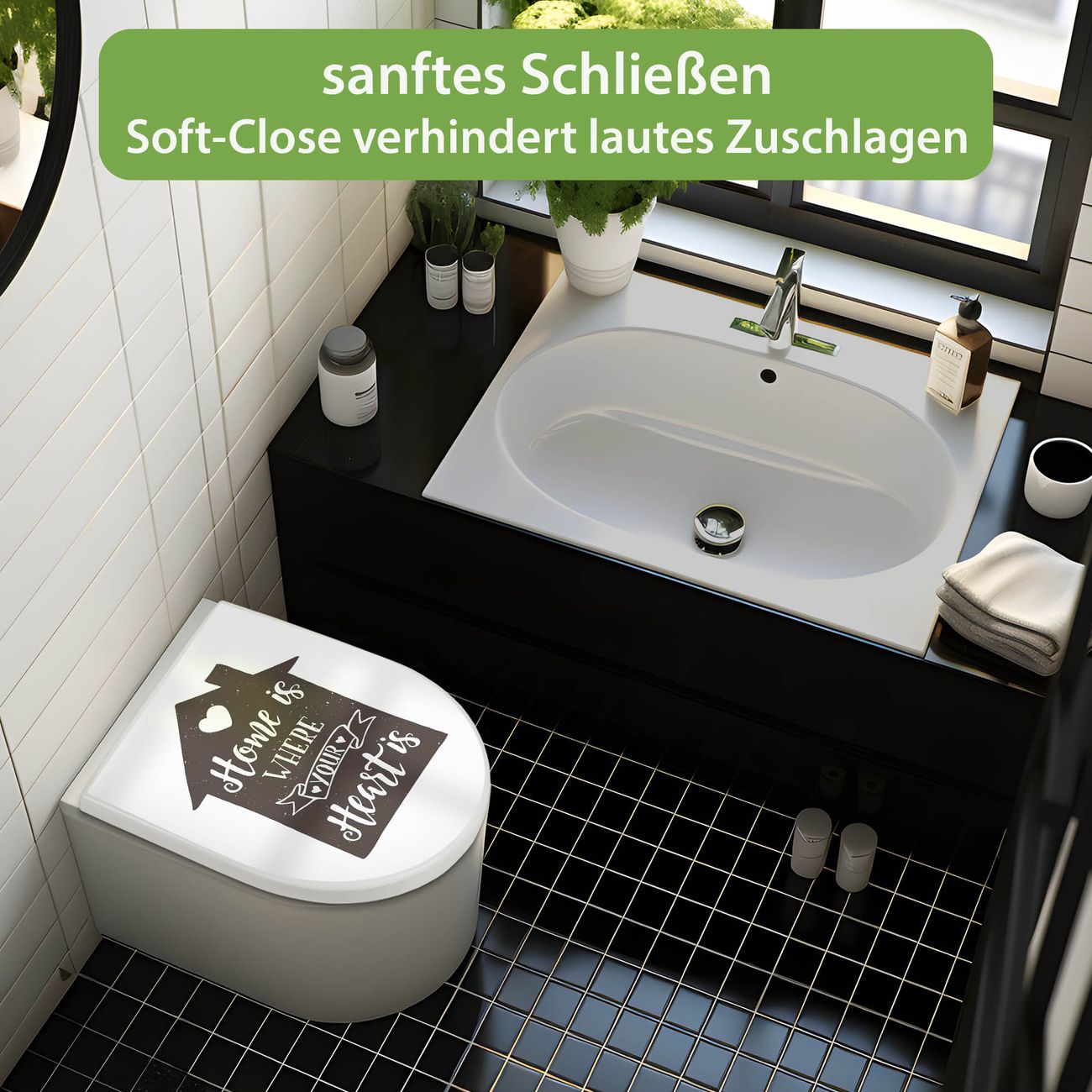 WC Sitz mit Absenkautomatik D Form Motiv Home is where your Heart is