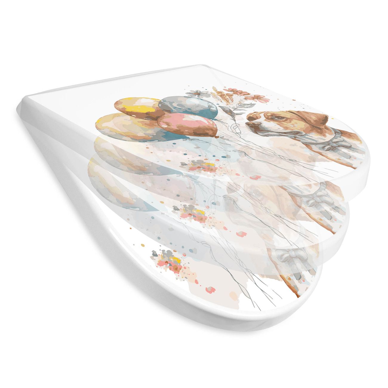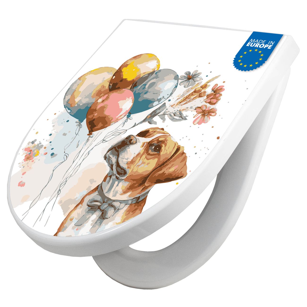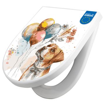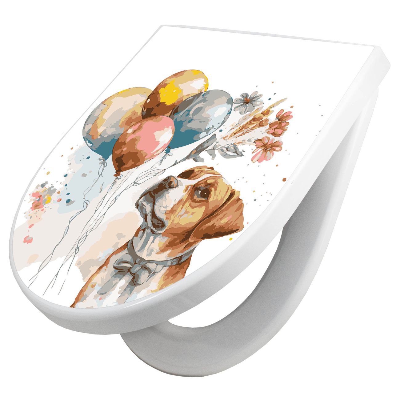 WC Sitz mit Absenkautomatik D Form Motiv Hund mit Ballons Aquarell