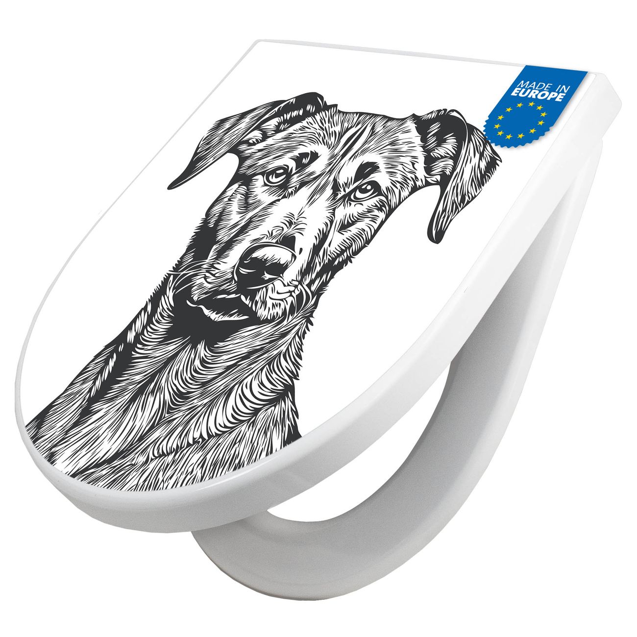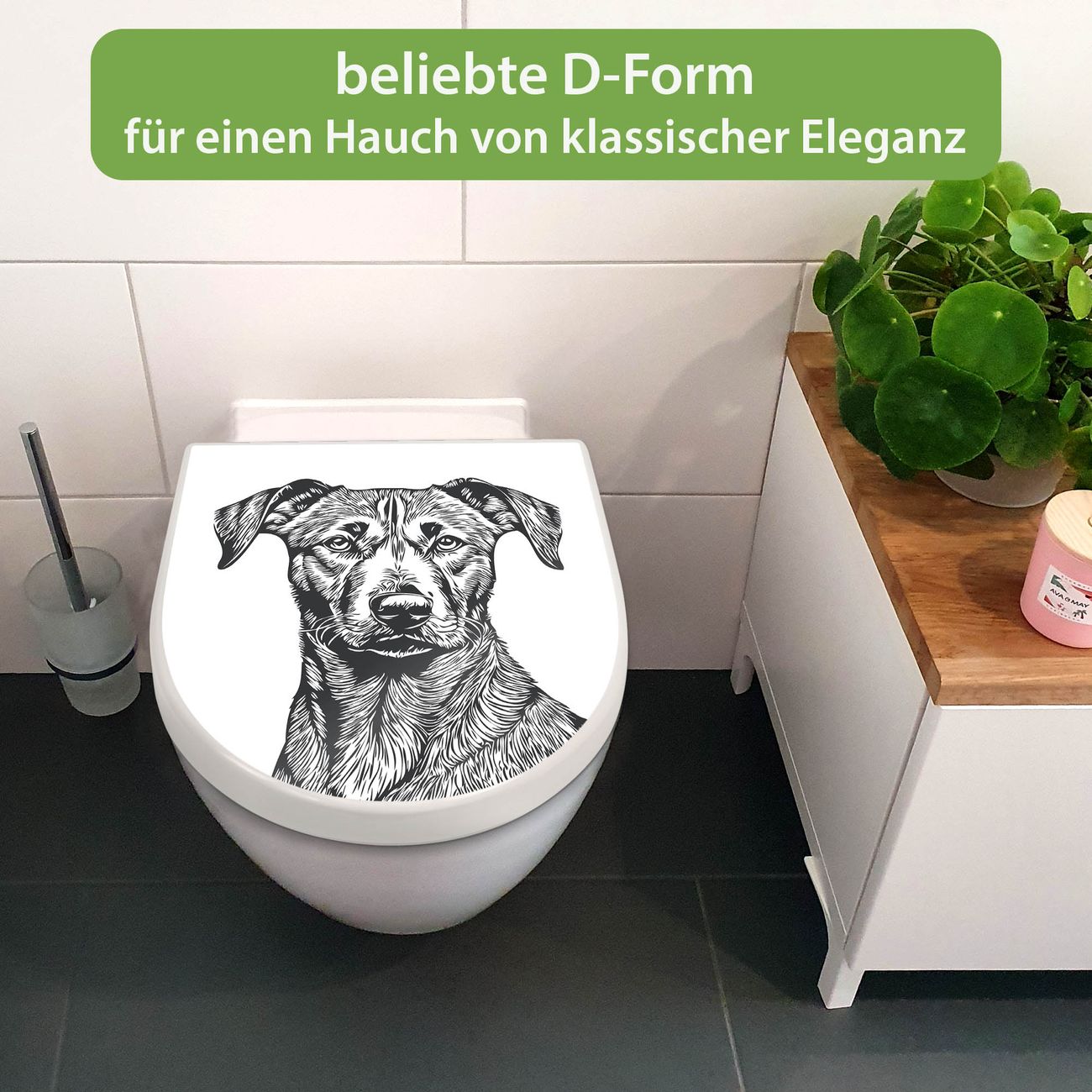 WC Sitz mit Absenkautomatik D Form Motiv Hundeskizze 1
