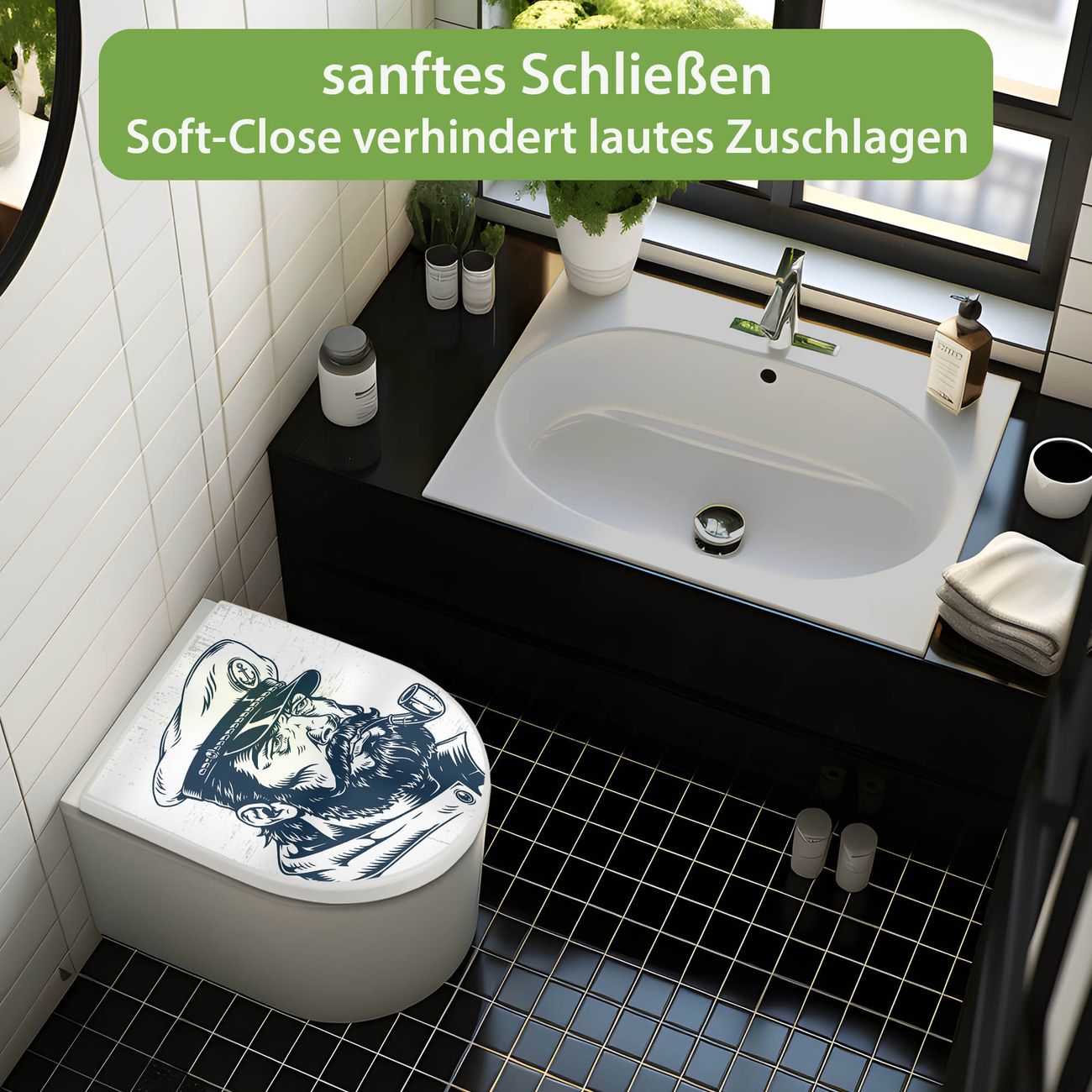 WC Sitz mit Absenkautomatik D Form Motiv Kapitän Portrait