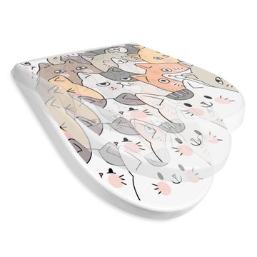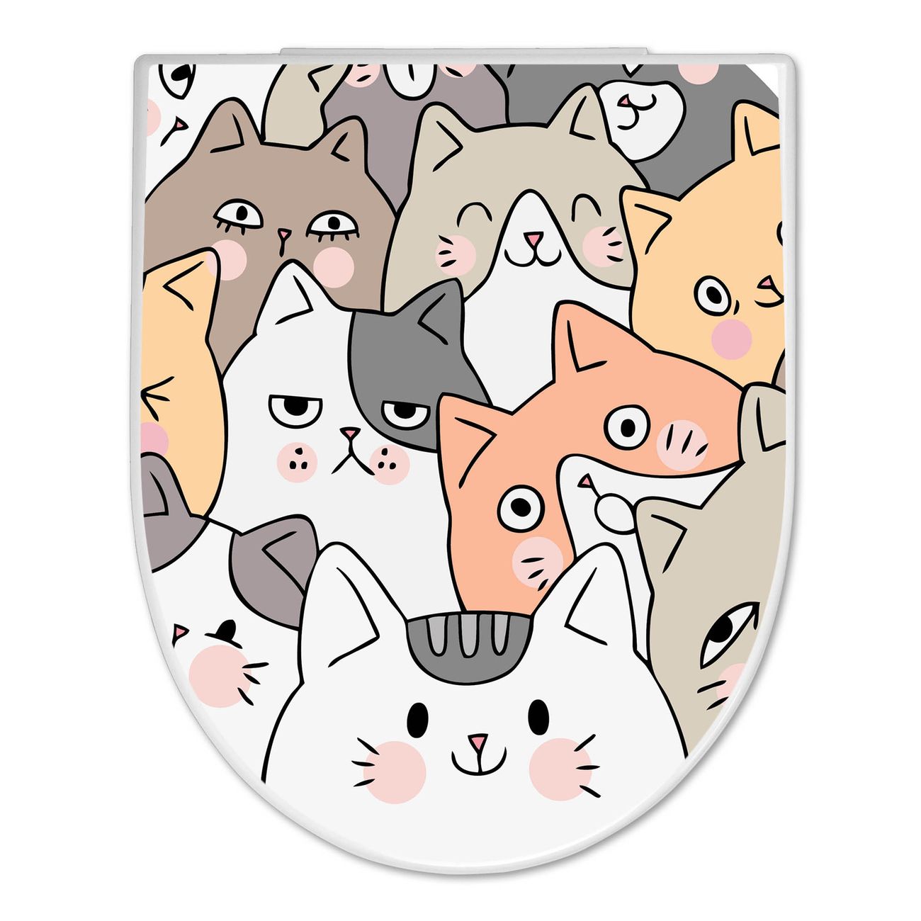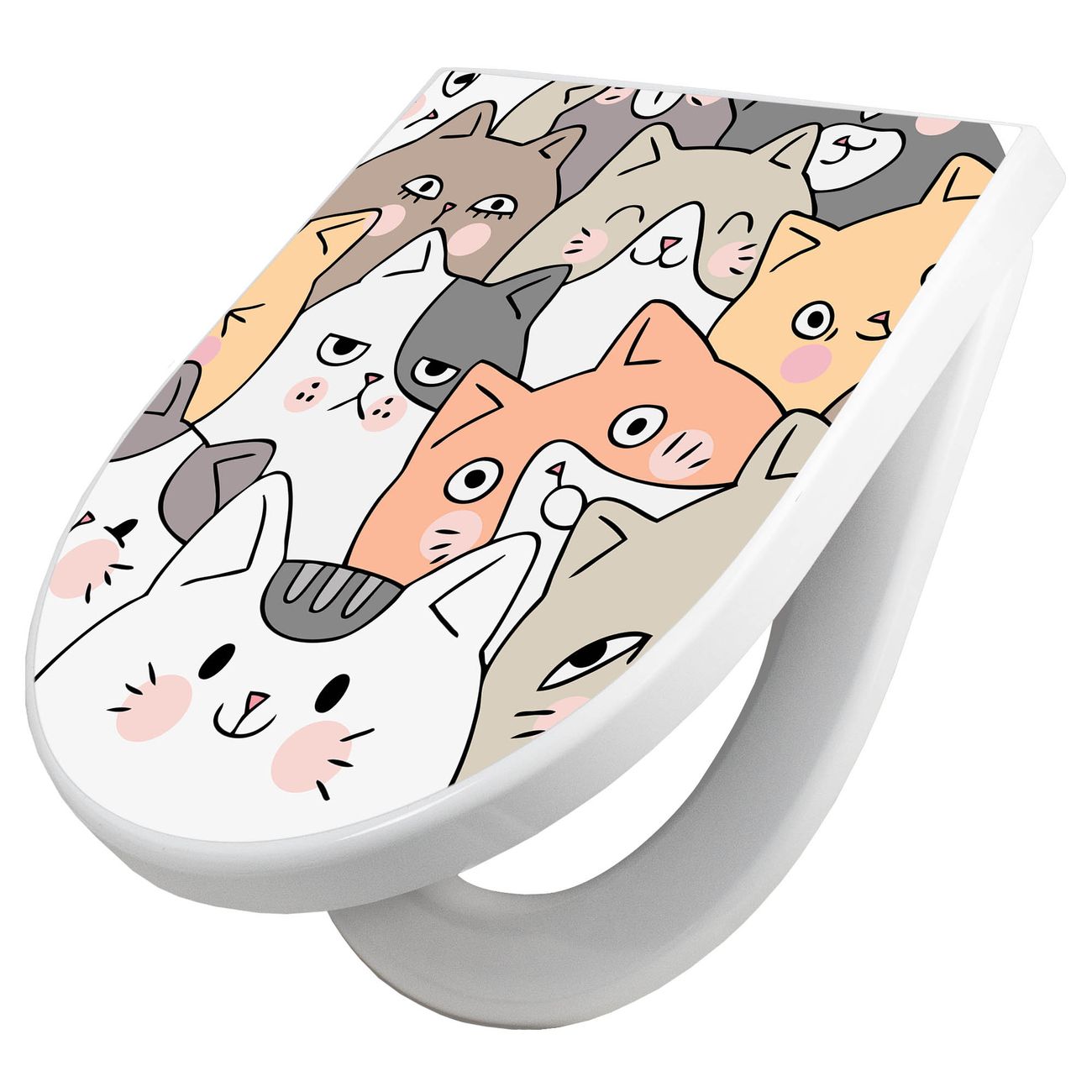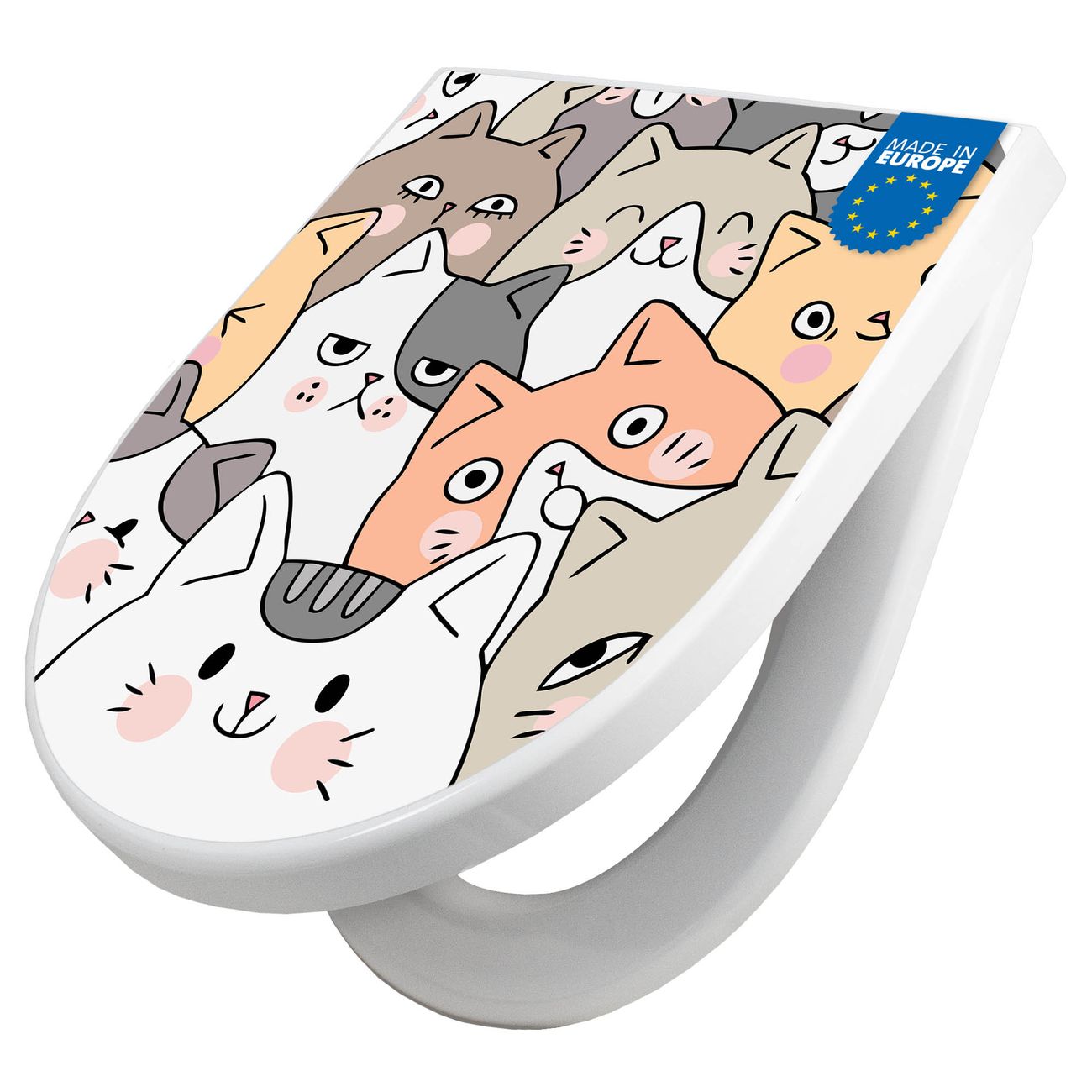 WC Sitz mit Absenkautomatik D Form Motiv Katzen Gruppe neugierig