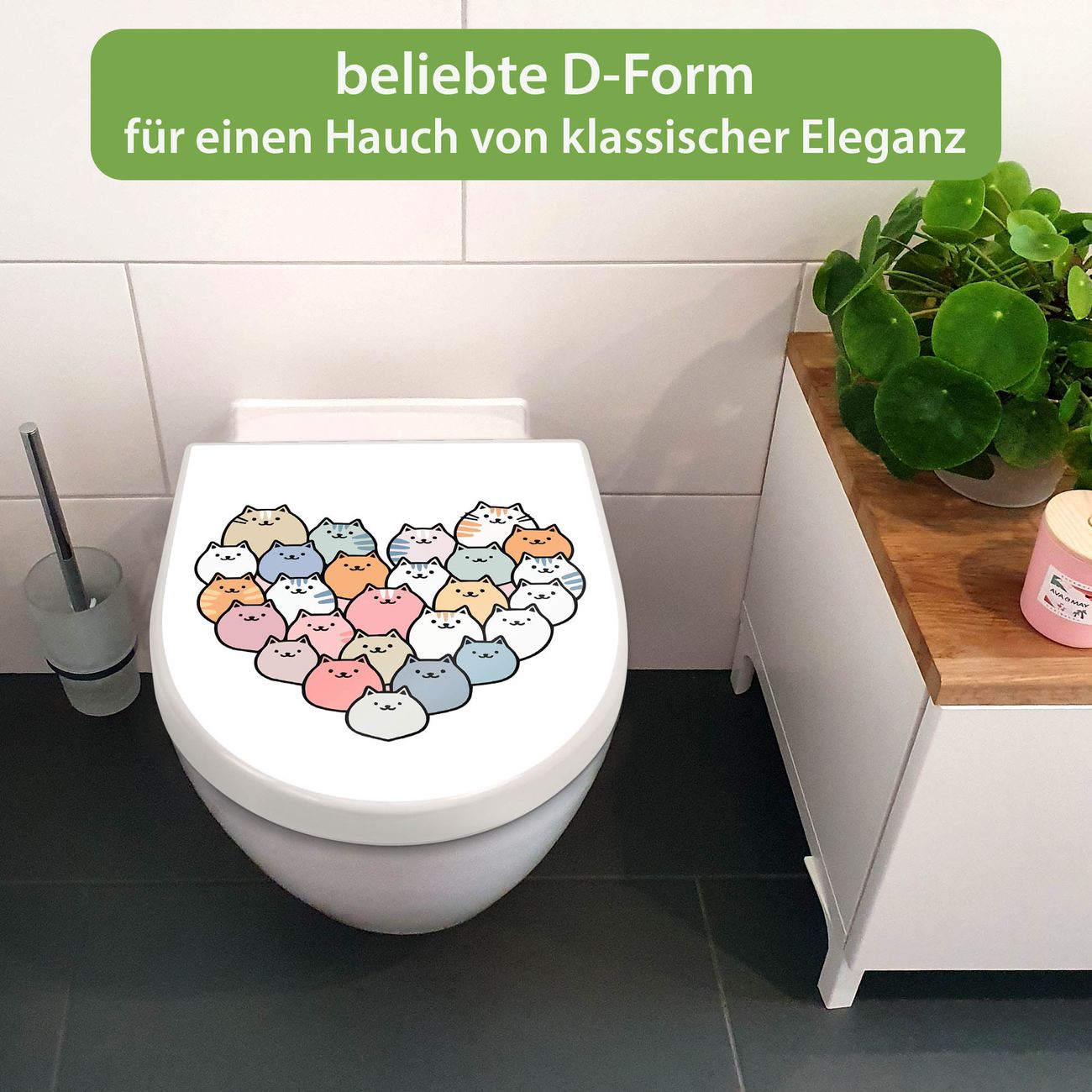 WC Sitz mit Absenkautomatik D Form Motiv Katzenherz