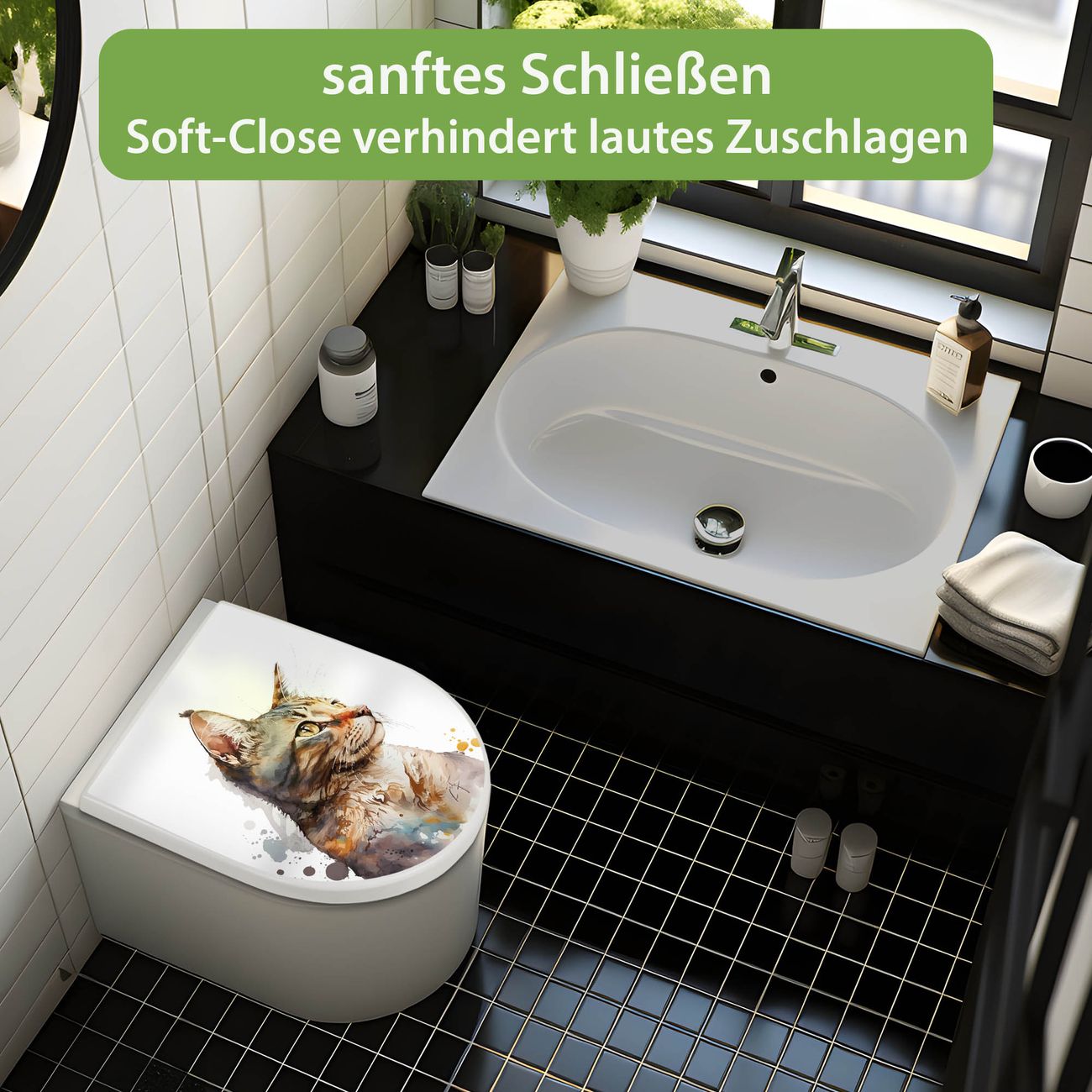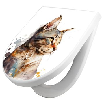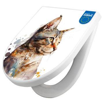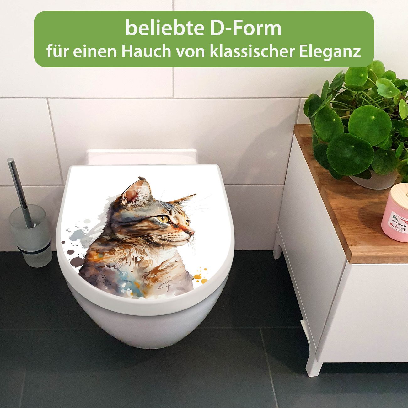 WC Sitz mit Absenkautomatik D Form Motiv Katzenportrait in Aquarell 2