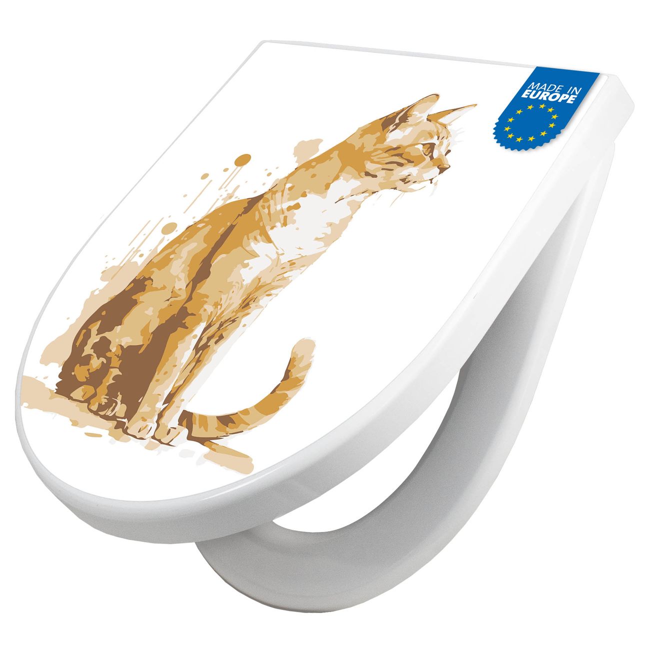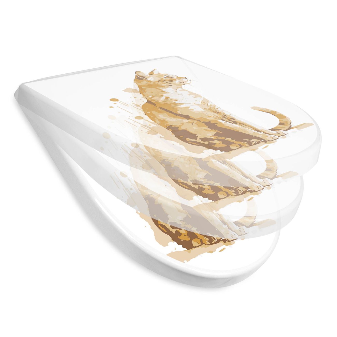 WC Sitz mit Absenkautomatik D Form Motiv Katzenportrait in Aquarell 5