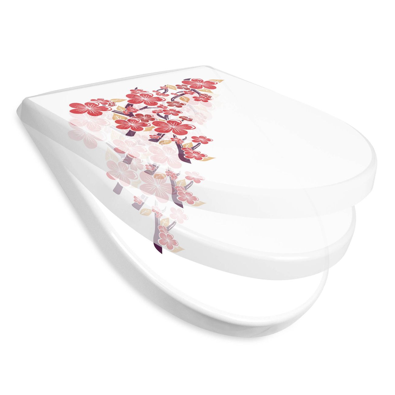 WC Sitz mit Absenkautomatik D Form Motiv Kirschblütenmuster