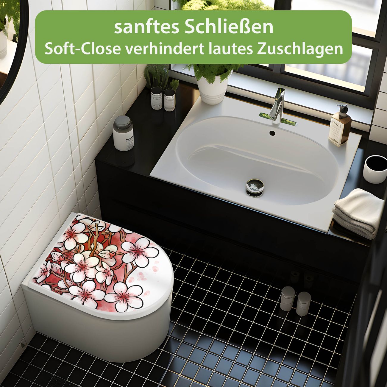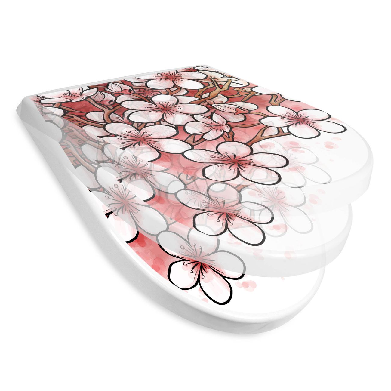 WC Sitz mit Absenkautomatik D Form Motiv Kirschblütentraum