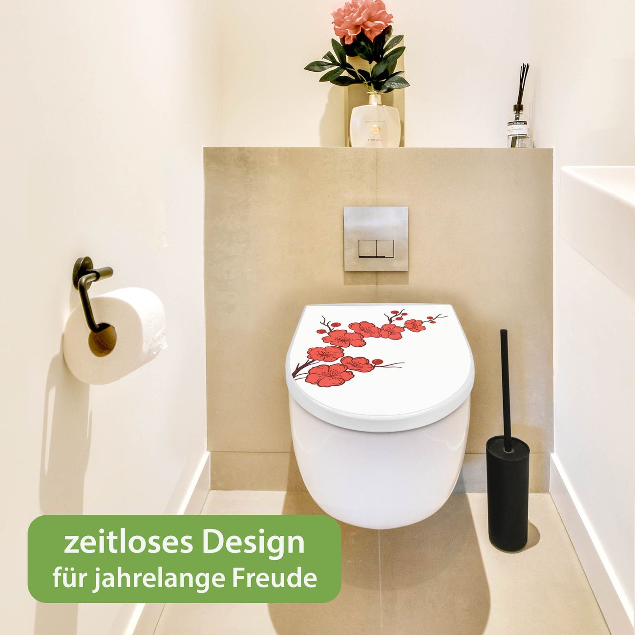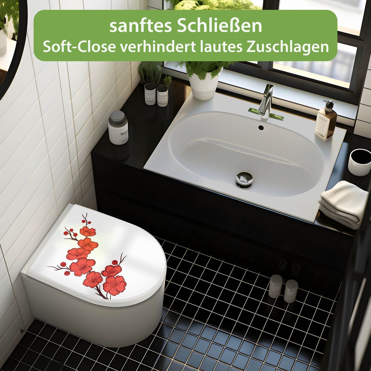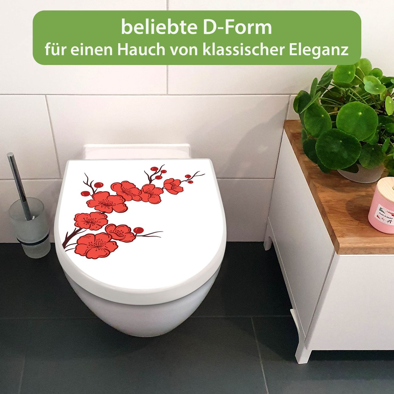 WC Sitz mit Absenkautomatik D Form Motiv Kirschblütenzweig