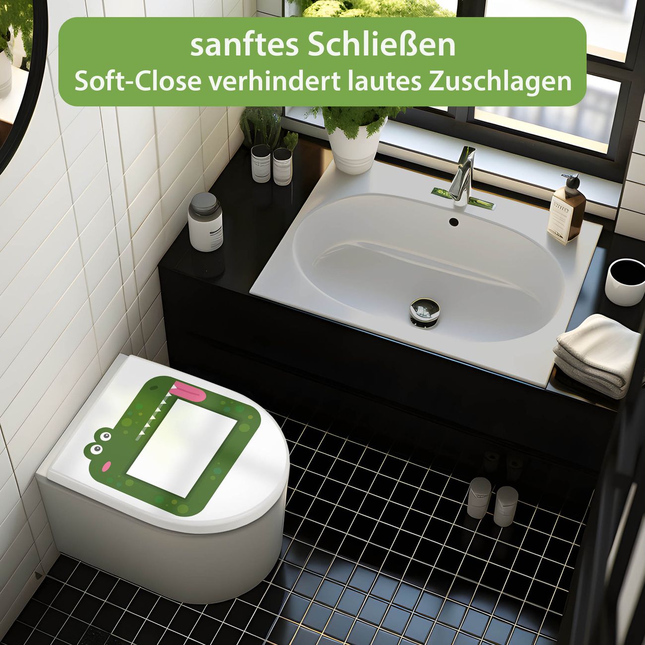 WC Sitz mit Absenkautomatik D Form Motiv Krokodil Bilderrahmen