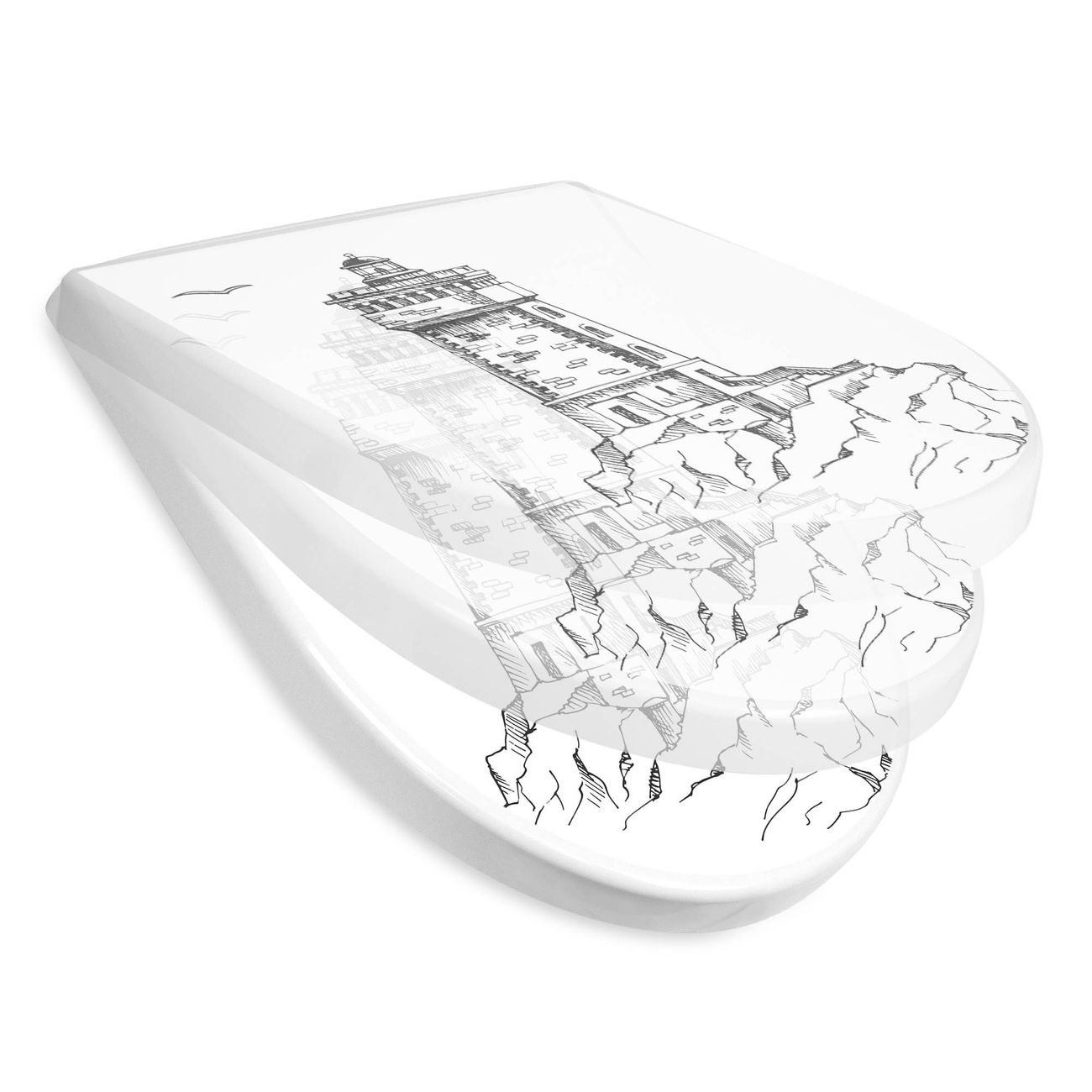 WC Sitz mit Absenkautomatik D Form Motiv Leuchtturm 8