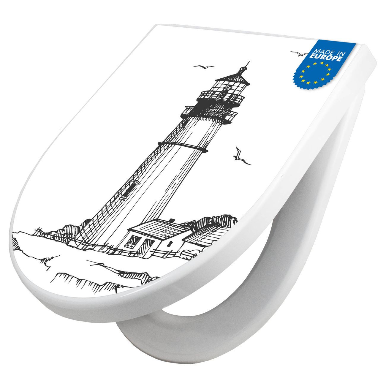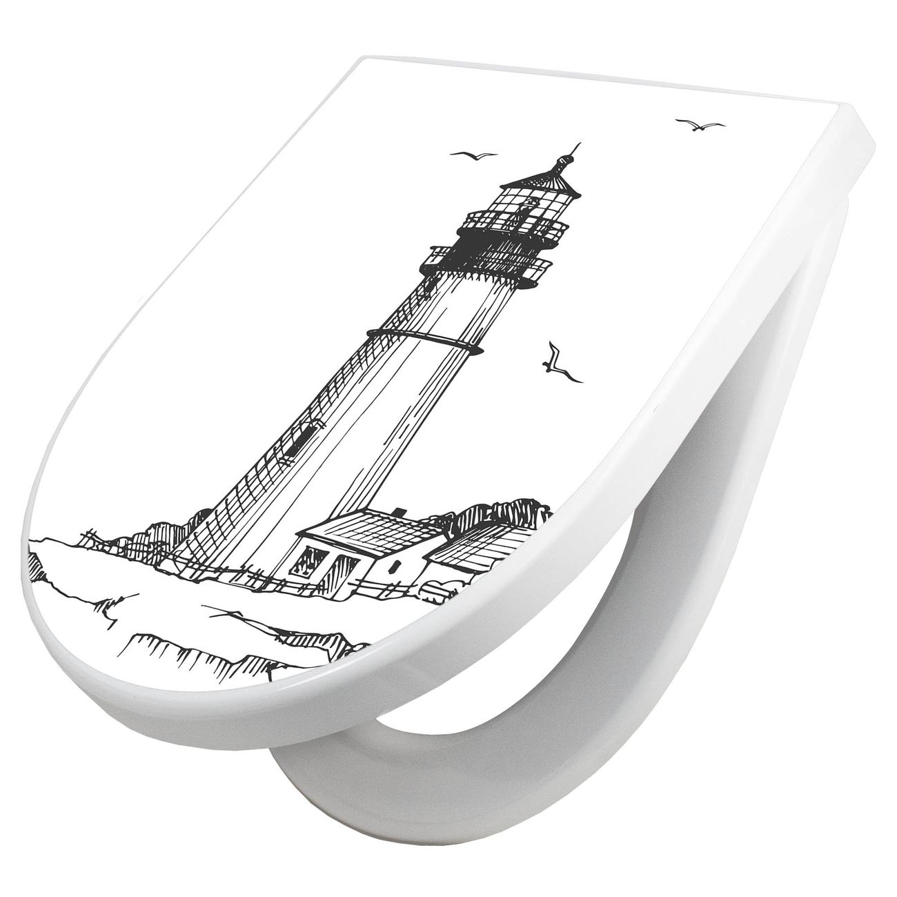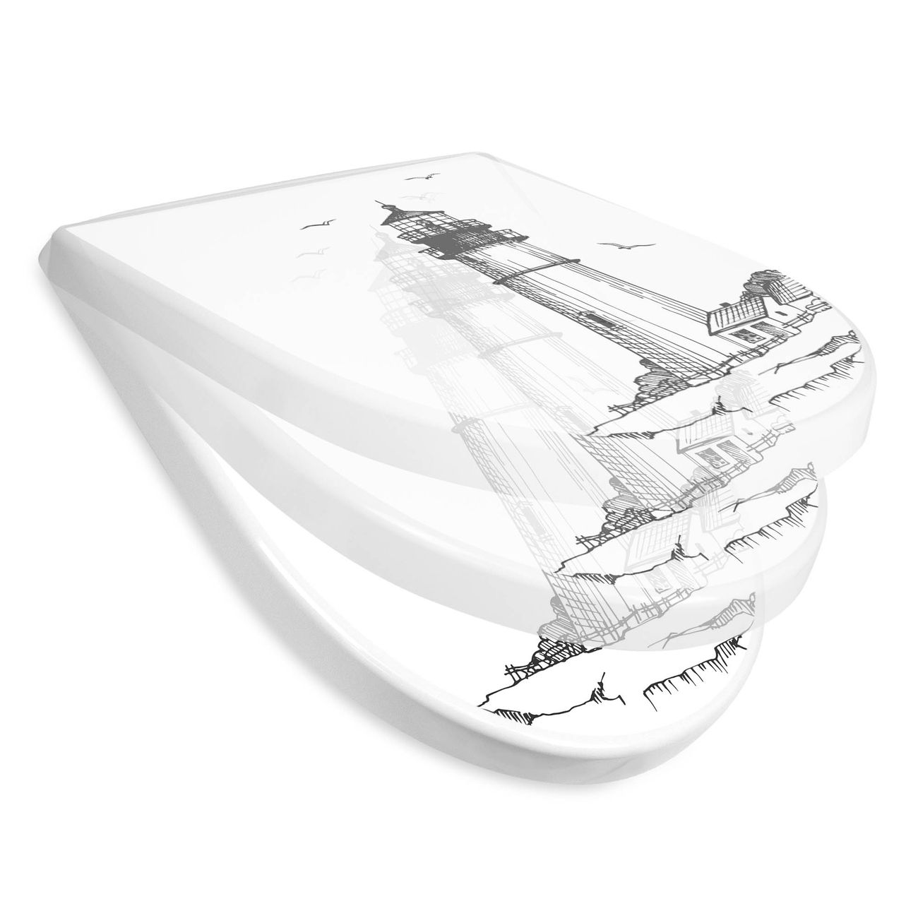 WC Sitz mit Absenkautomatik D Form Motiv Leuchtturm 9