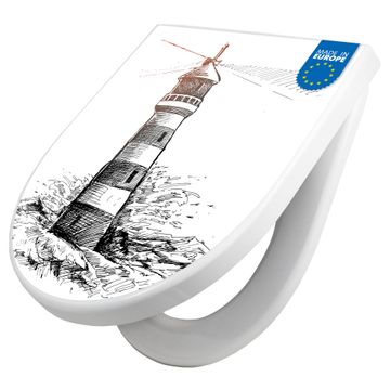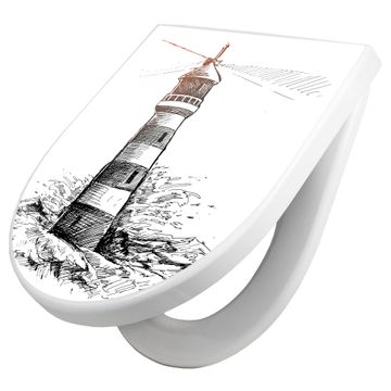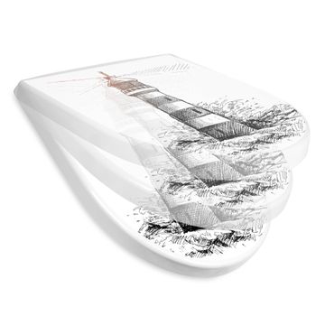 WC Sitz mit Absenkautomatik D Form Motiv Leuchtturm in der Brandung