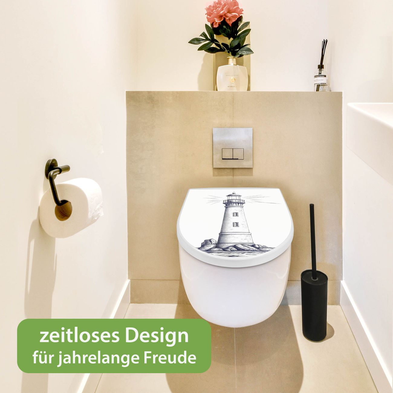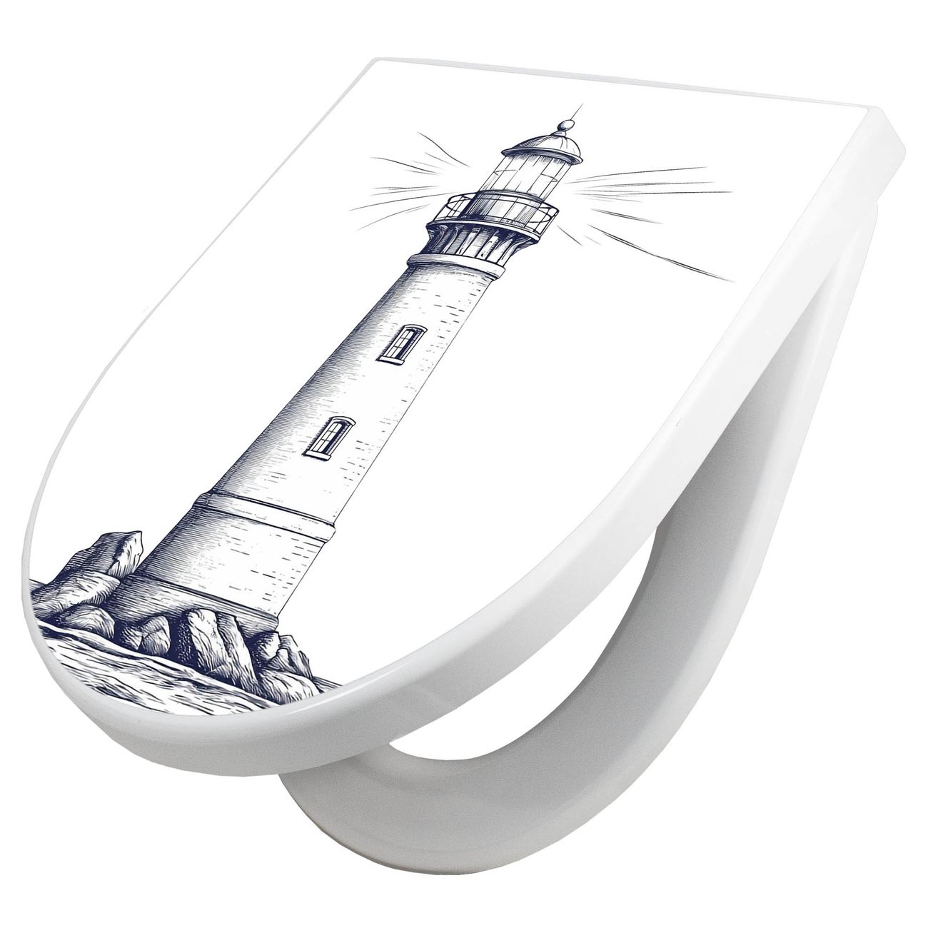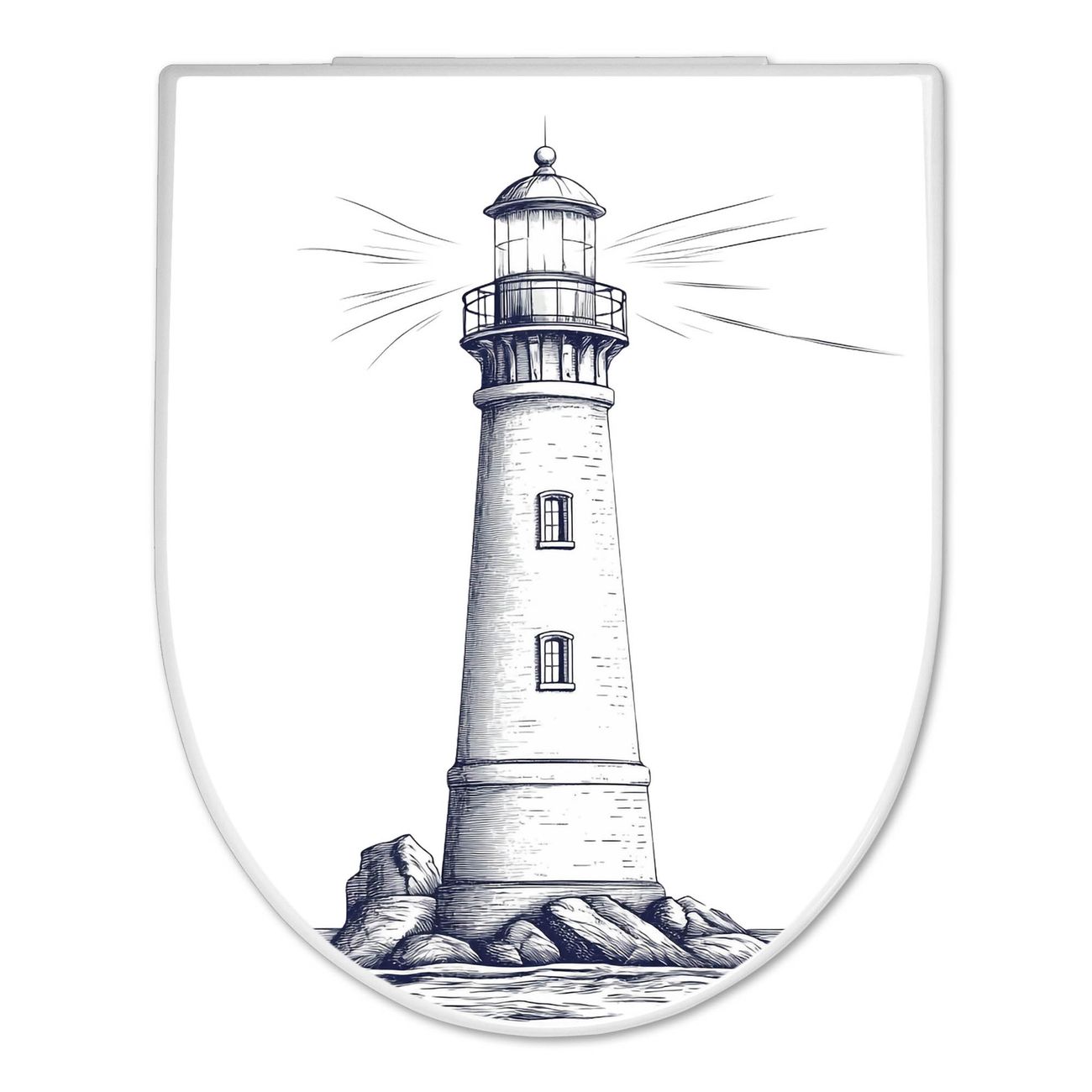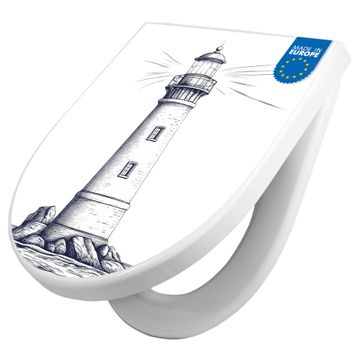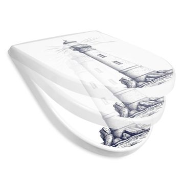 WC Sitz mit Absenkautomatik D Form Motiv Leuchtturm-Skizze