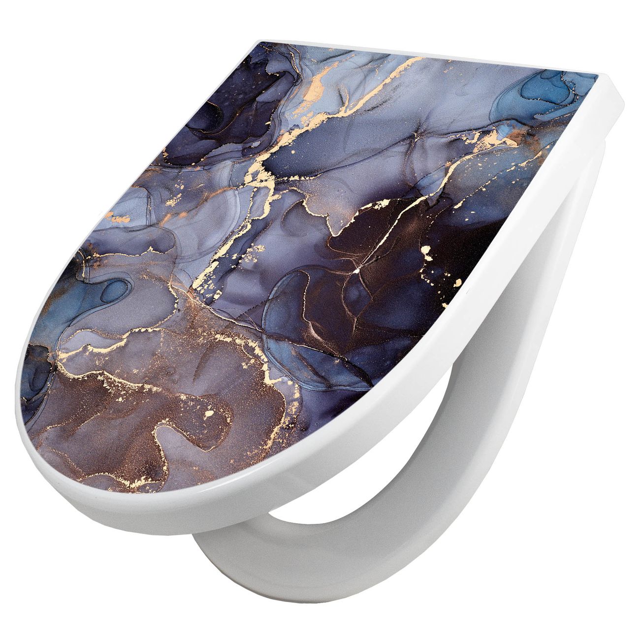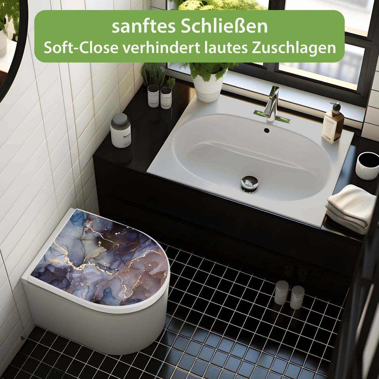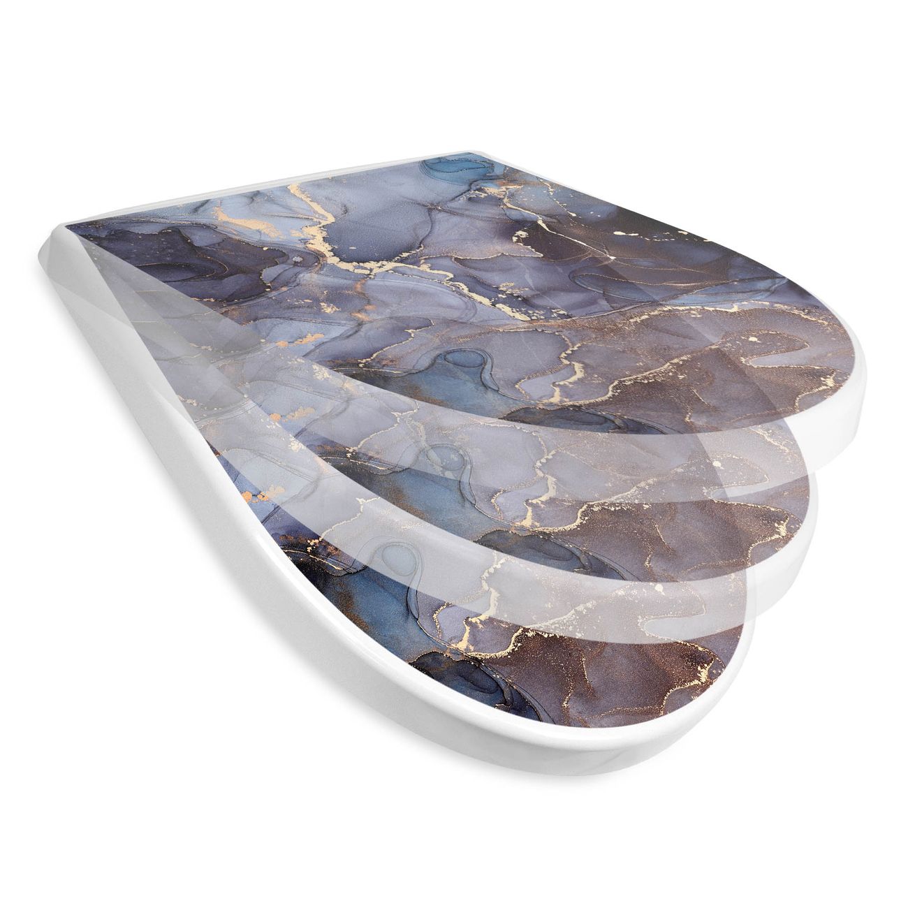 WC Sitz mit Absenkautomatik D Form Motiv Lila Marmor mit Gold 1