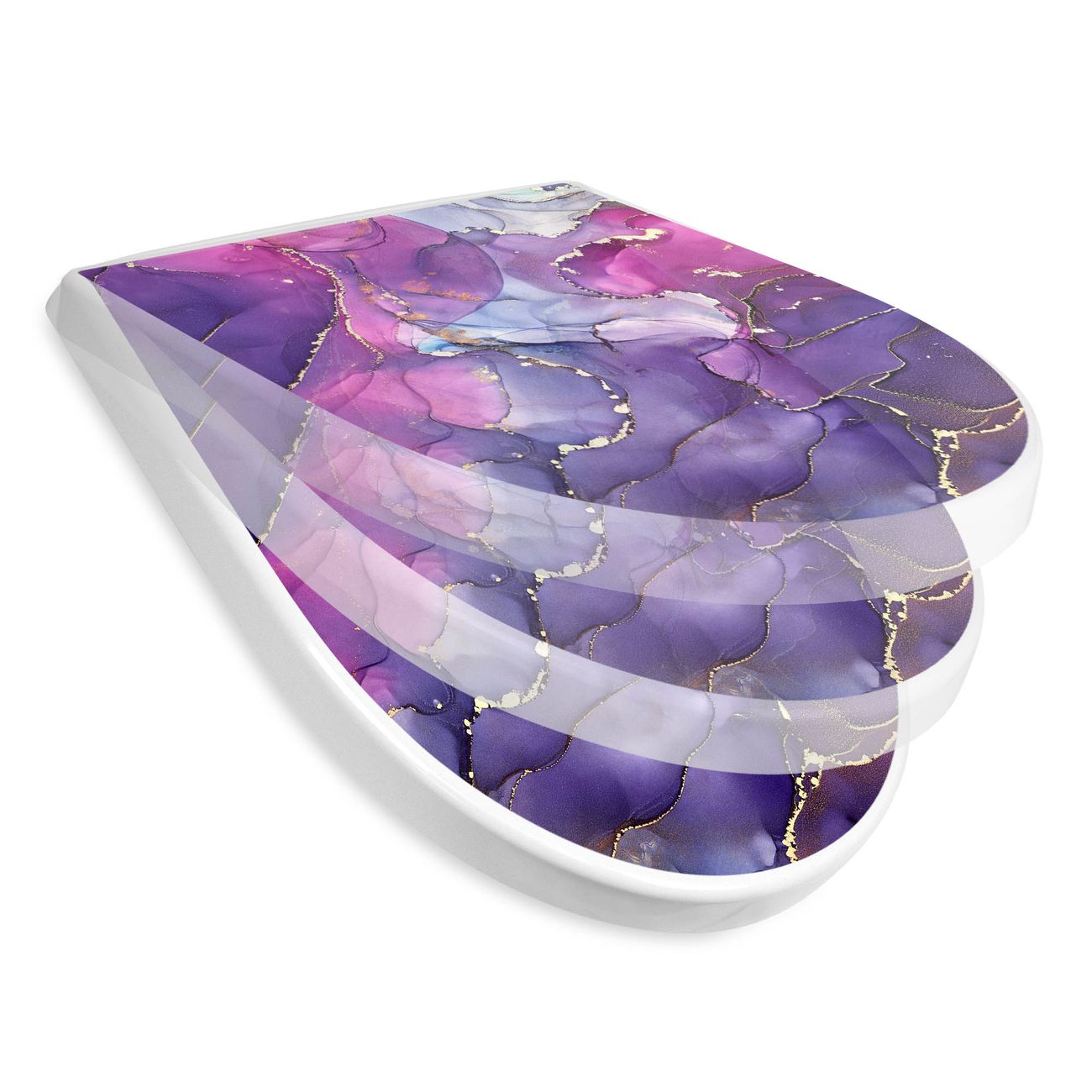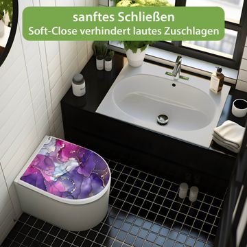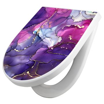 WC Sitz mit Absenkautomatik D Form Motiv Lila Marmor mit Gold 2