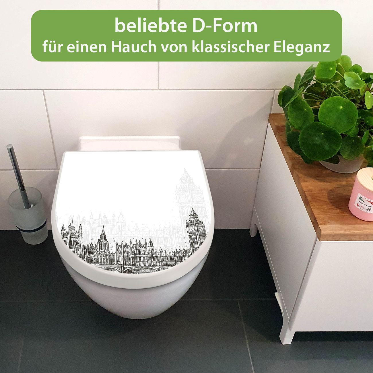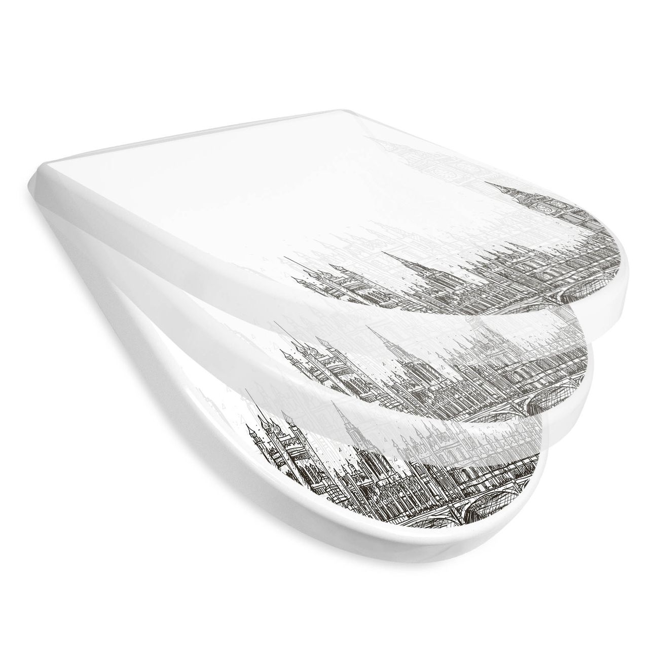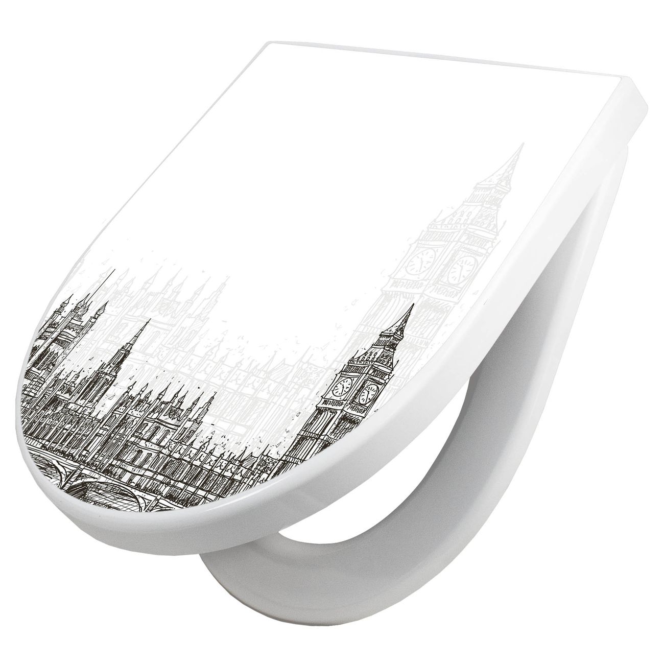 WC Sitz mit Absenkautomatik D Form Motiv London Skyline Skizze