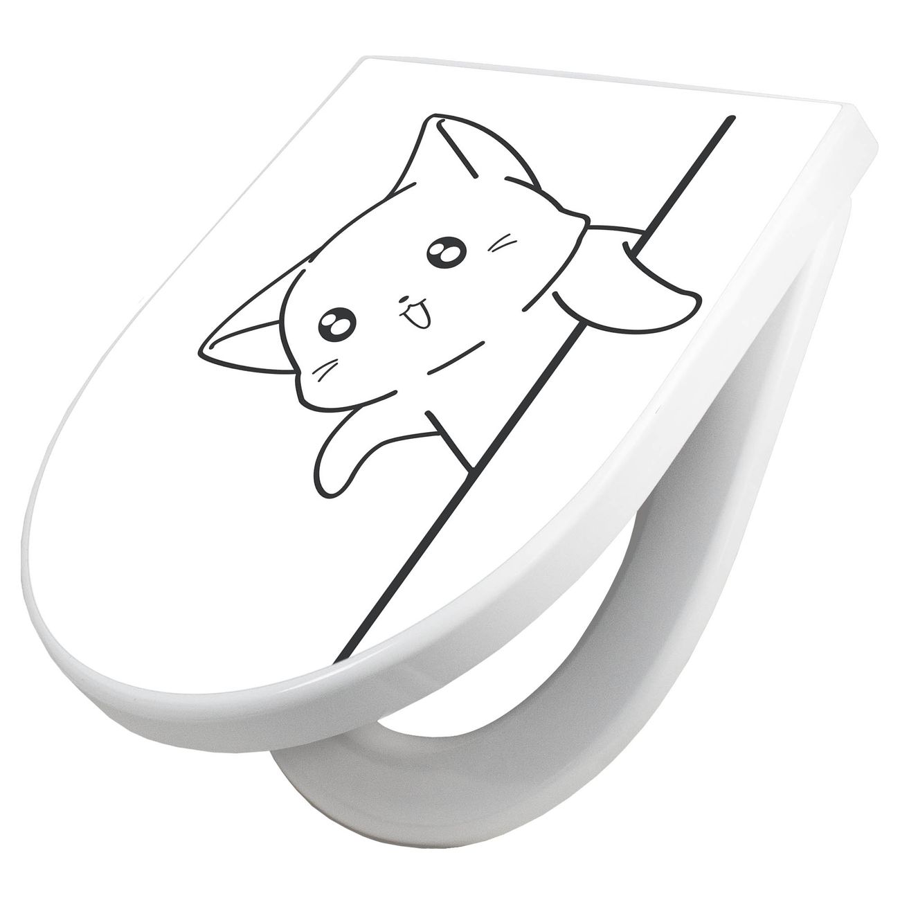 WC Sitz mit Absenkautomatik D Form Motiv Lustige Katze am Rand
