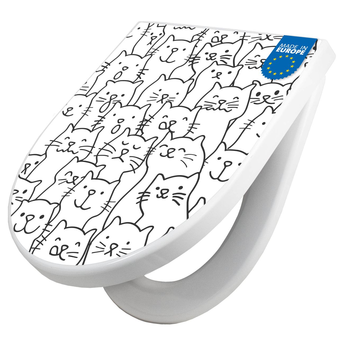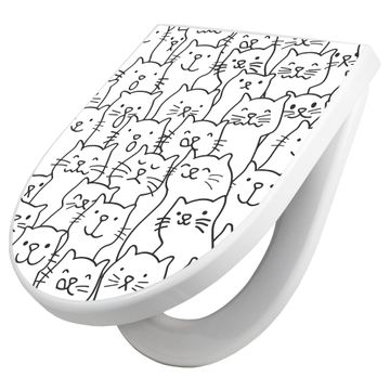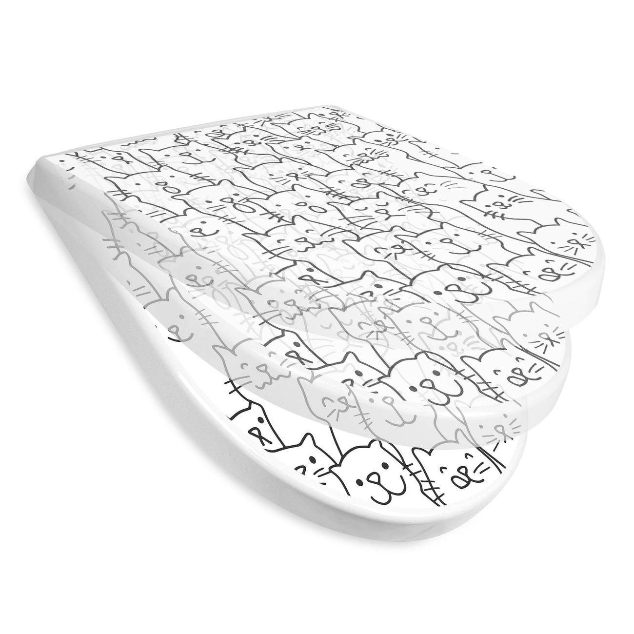 WC Sitz mit Absenkautomatik D Form Motiv Lustiges Katzenmuster