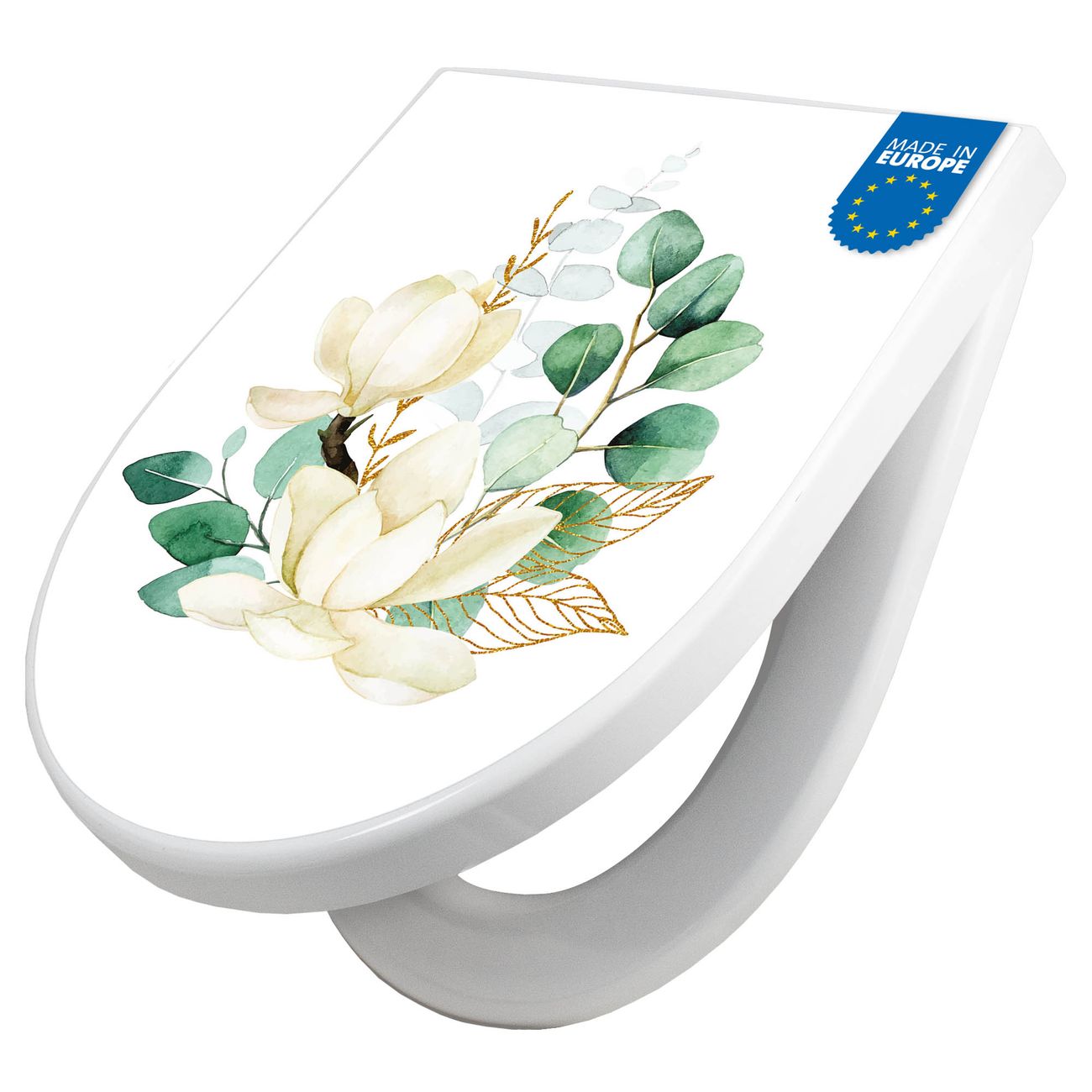 WC Sitz mit Absenkautomatik D Form Motiv Magnolienkomposition