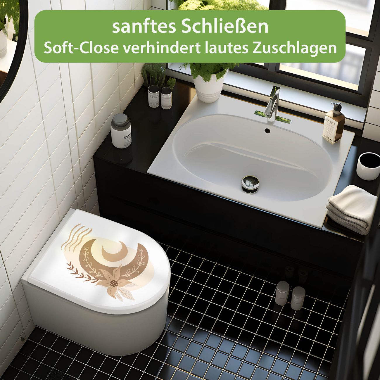 WC Sitz mit Absenkautomatik D Form Motiv Mondblume