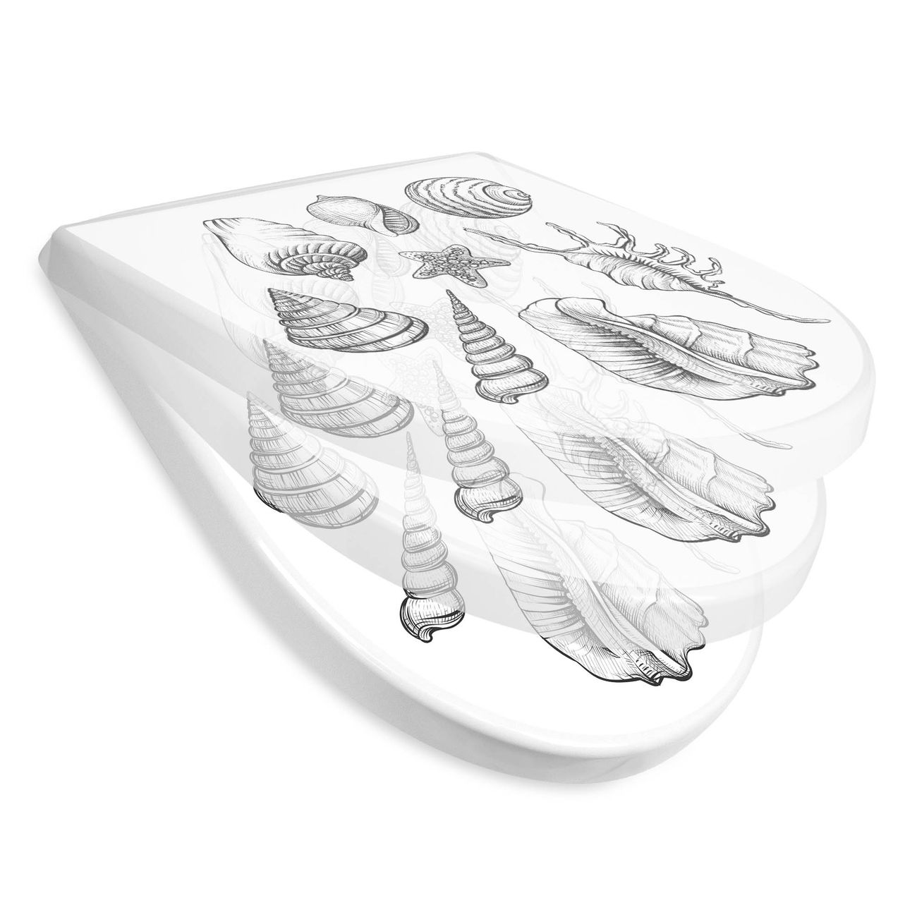 WC Sitz mit Absenkautomatik D Form Motiv Muschel 10