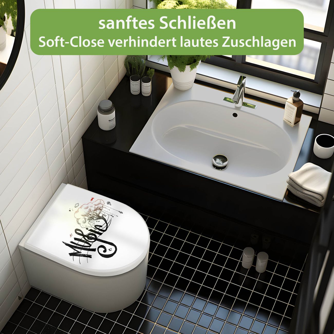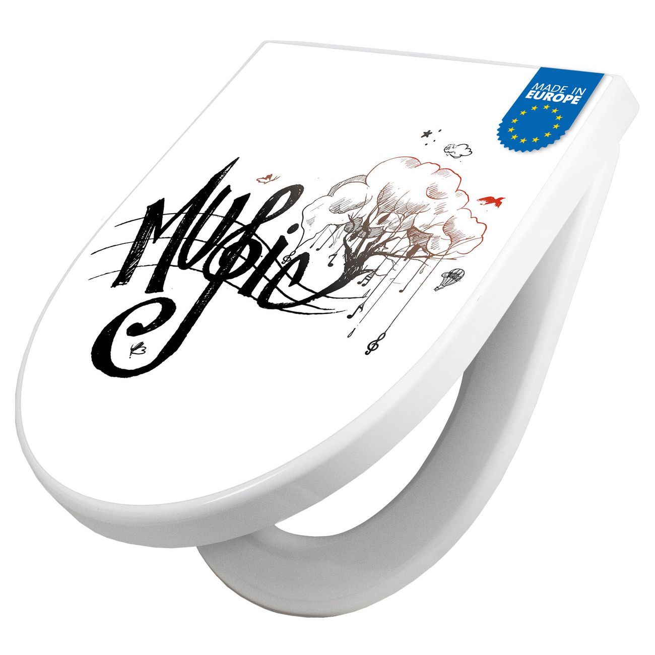 WC Sitz mit Absenkautomatik D Form Motiv Musikbaum Illustration