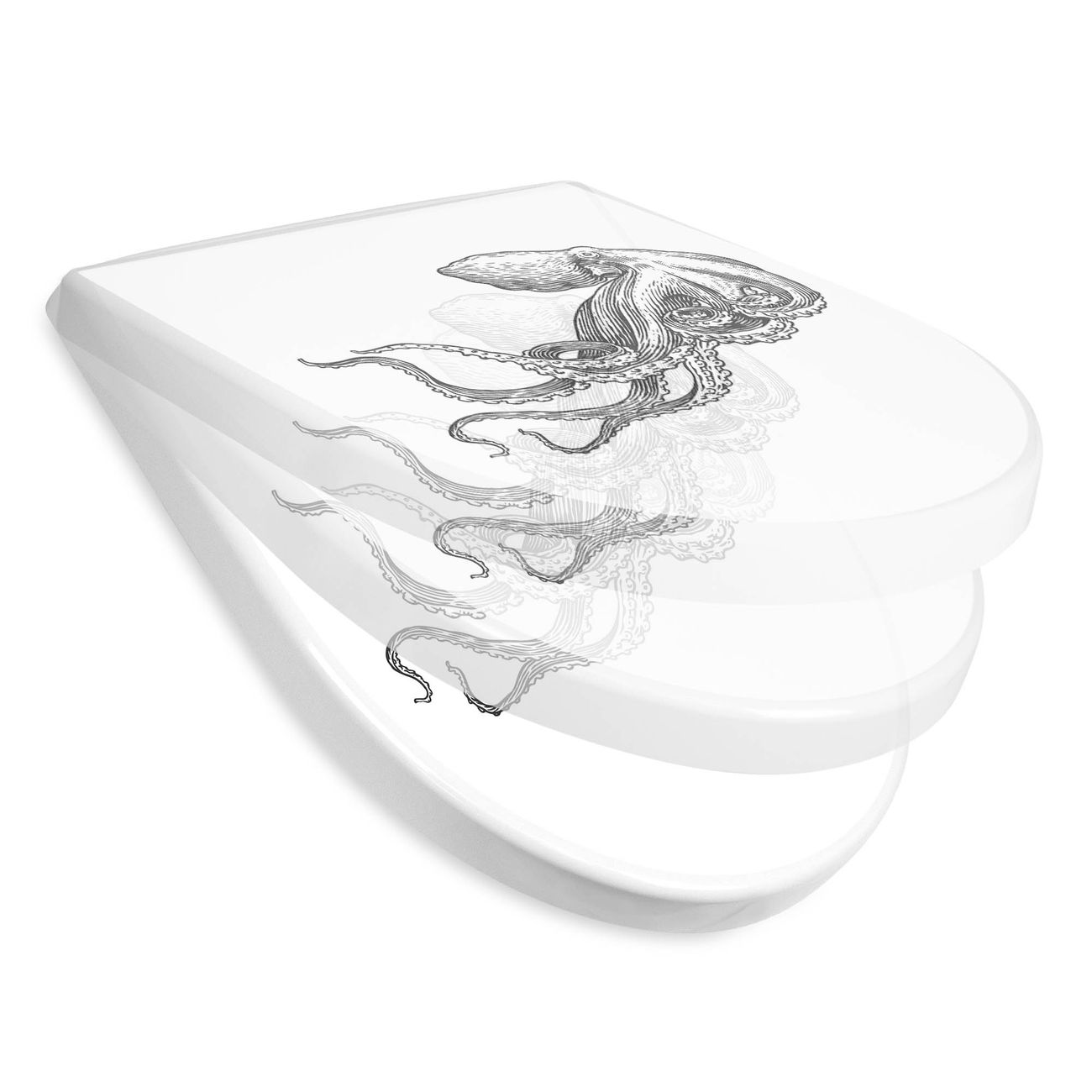 WC Sitz mit Absenkautomatik D Form Motiv Oktopus 6