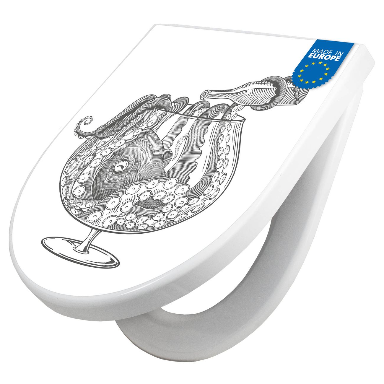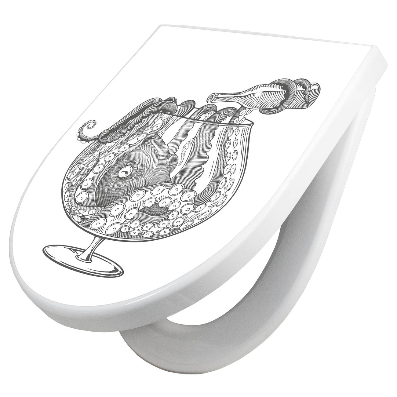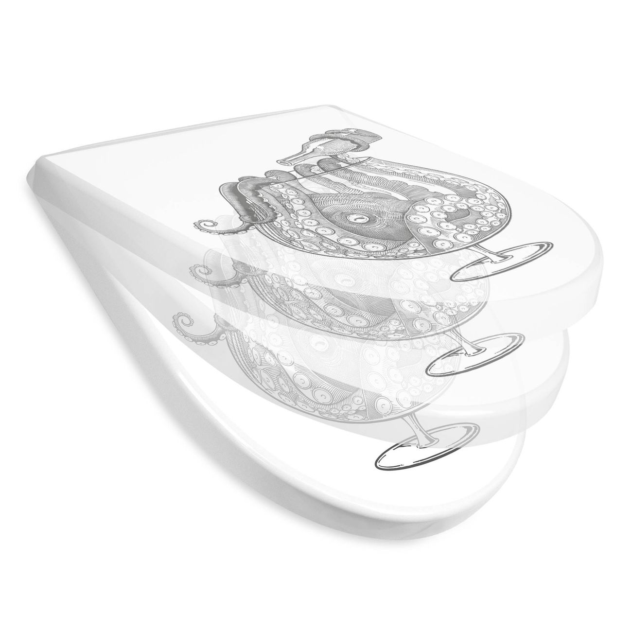 WC Sitz mit Absenkautomatik D Form Motiv Oktopus im Glas 2