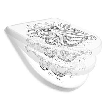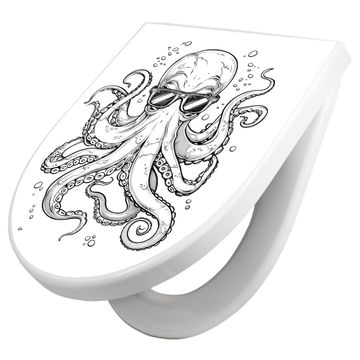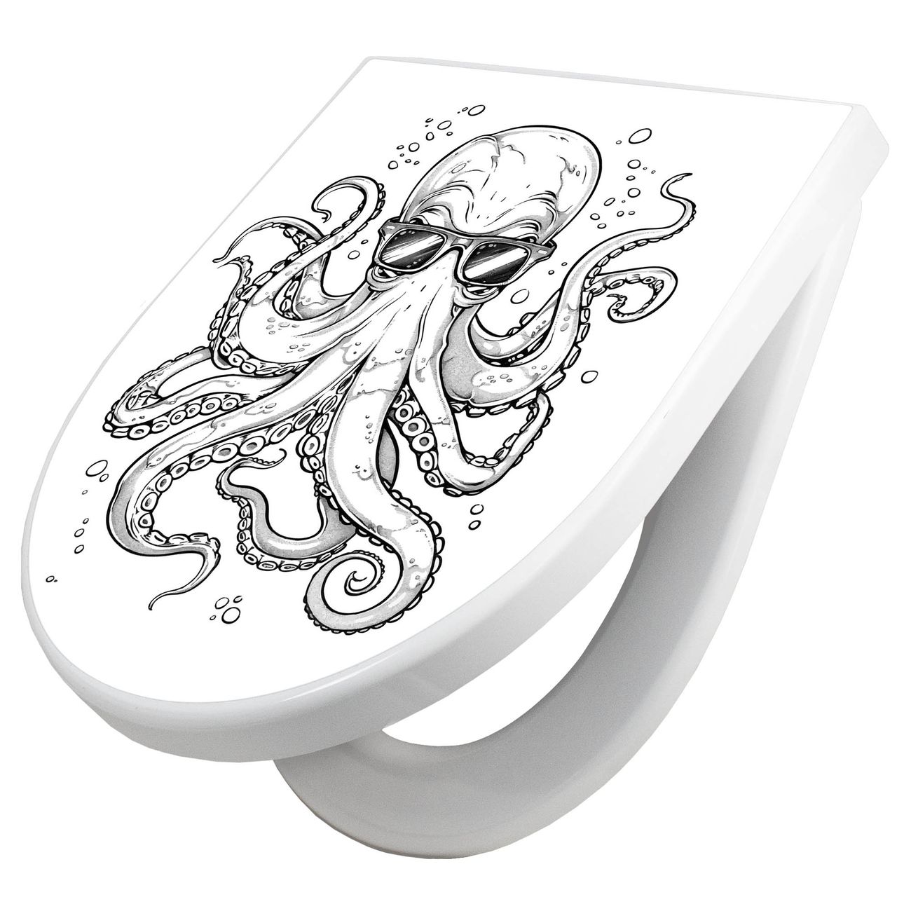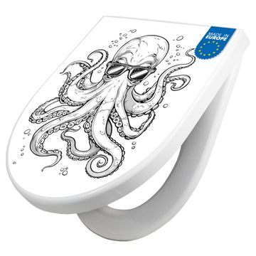 WC Sitz mit Absenkautomatik D Form Motiv Oktopus mit Brille