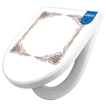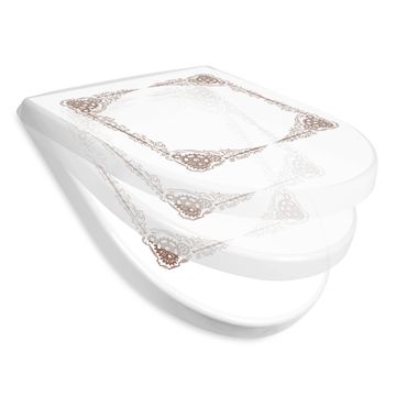 WC Sitz mit Absenkautomatik D Form Motiv Ornamentaler Zahnräderrahmen