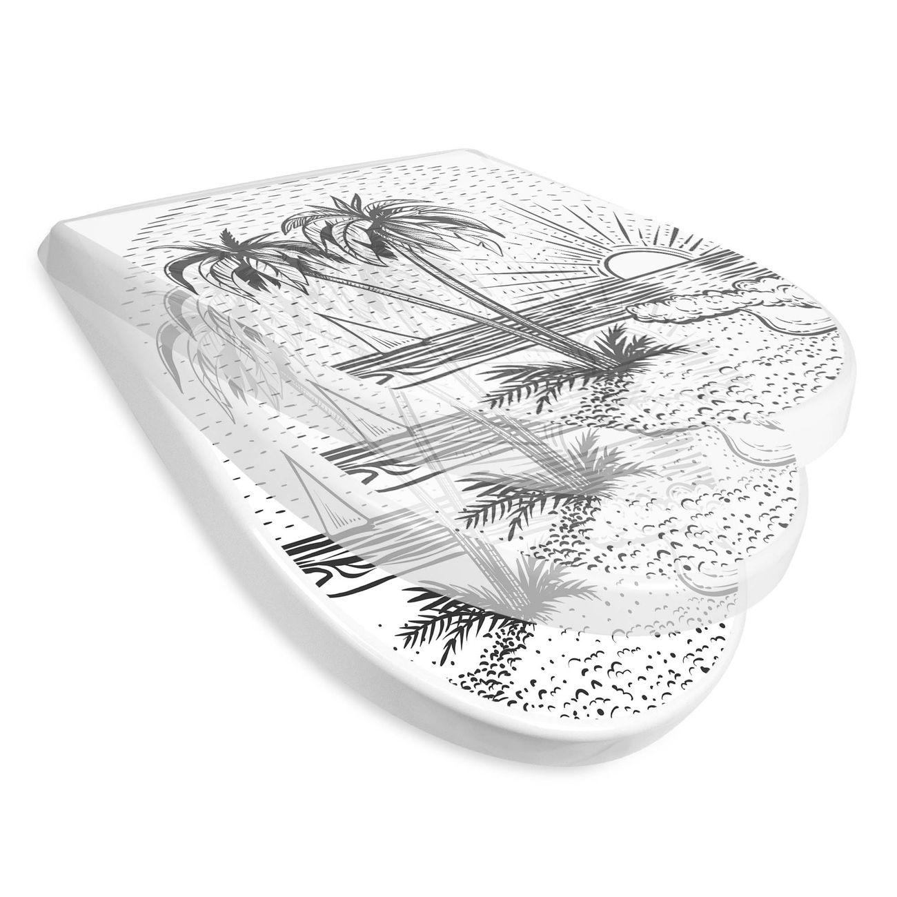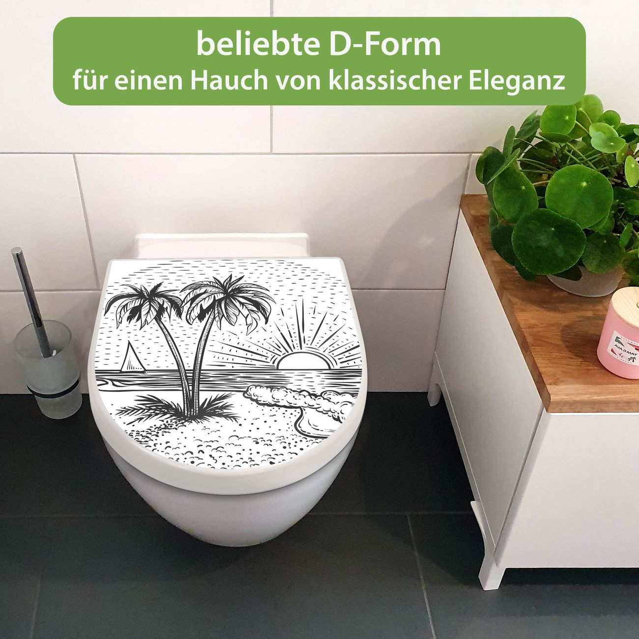 WC Sitz mit Absenkautomatik D Form Motiv Palmenstrand 2