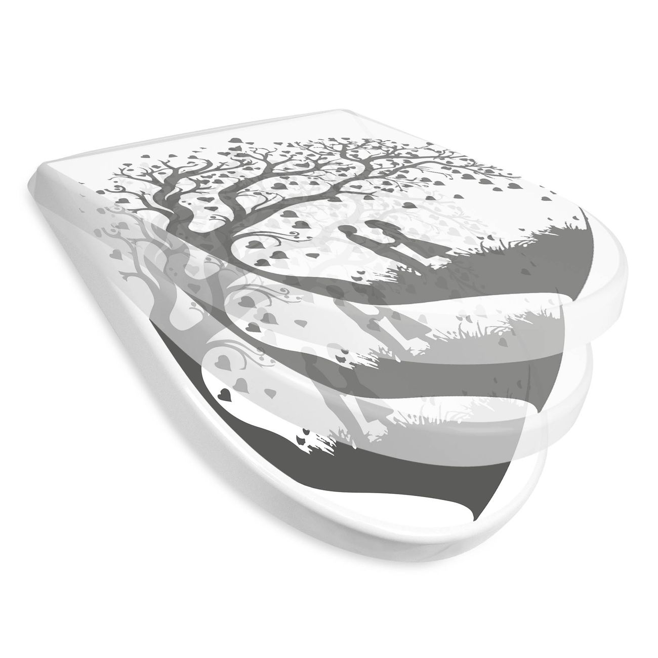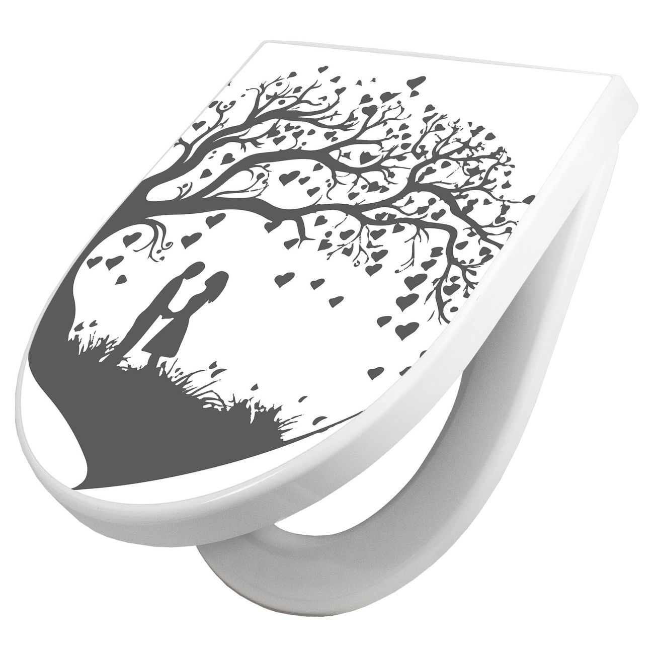 WC Sitz mit Absenkautomatik D Form Motiv Romantisches Baumherz Silhouette 2