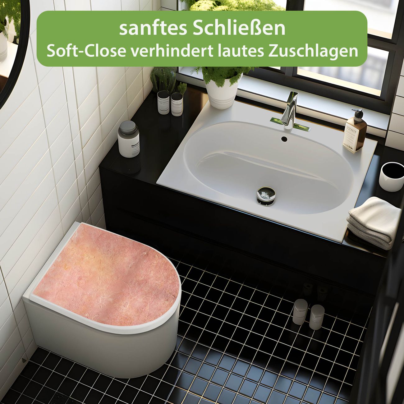 WC Sitz mit Absenkautomatik D Form Motiv Rosa Putz