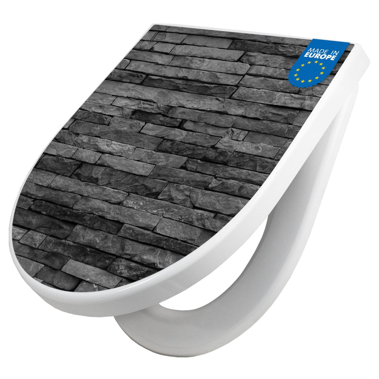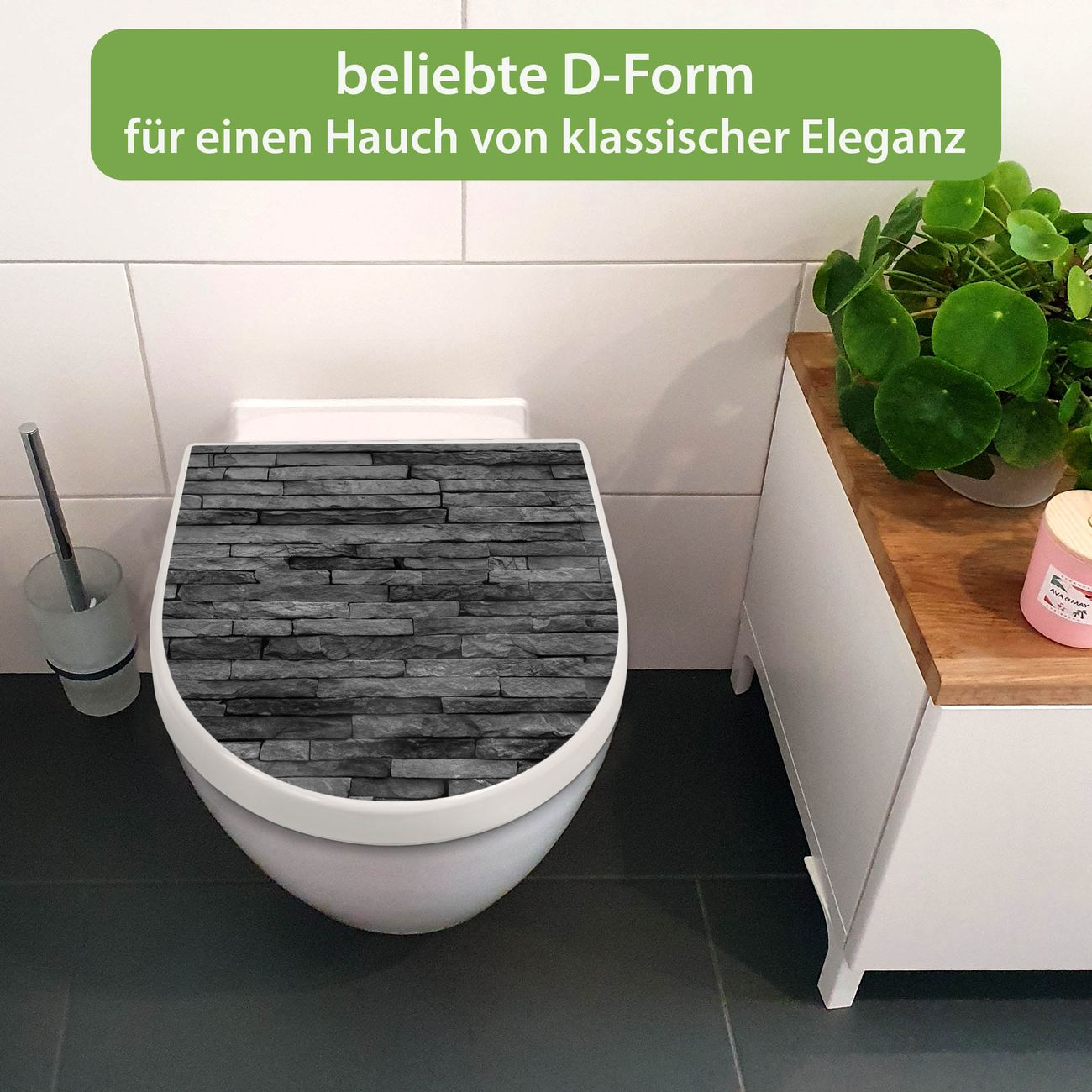 WC Sitz mit Absenkautomatik D Form Motiv Rustikale Steinwand