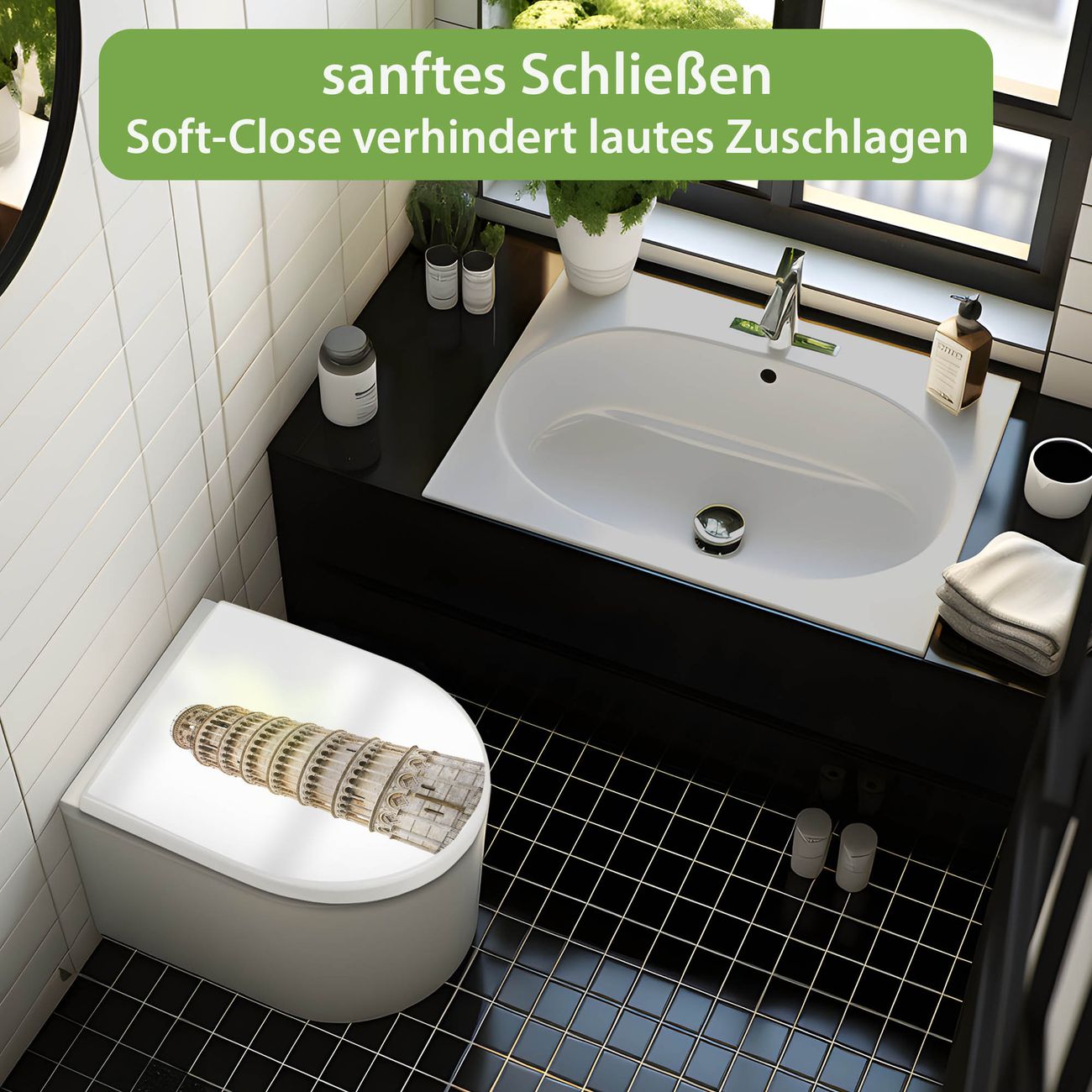 WC Sitz mit Absenkautomatik D Form Motiv Schiefer Turm von Pisa