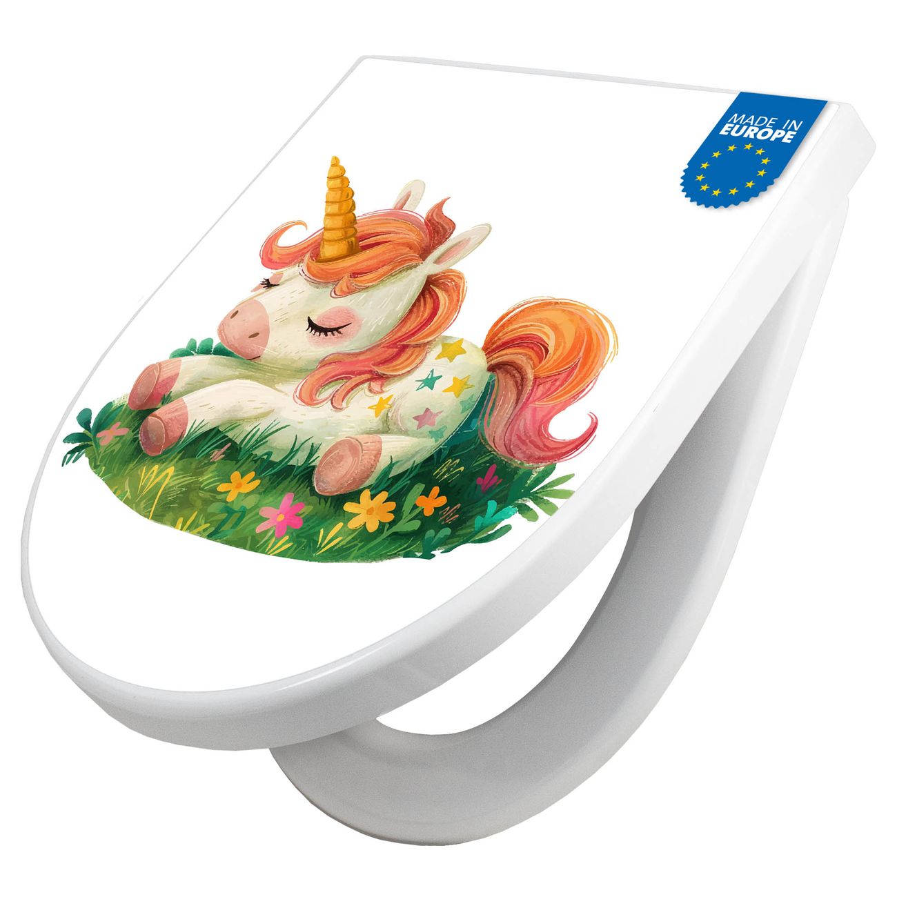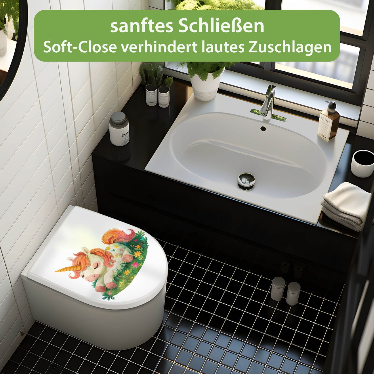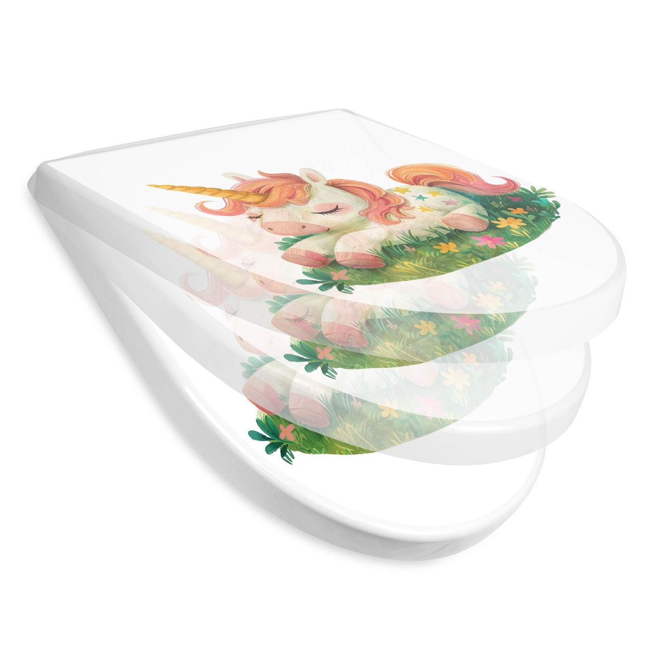 WC Sitz mit Absenkautomatik D Form Motiv Schlafendes Einhorn