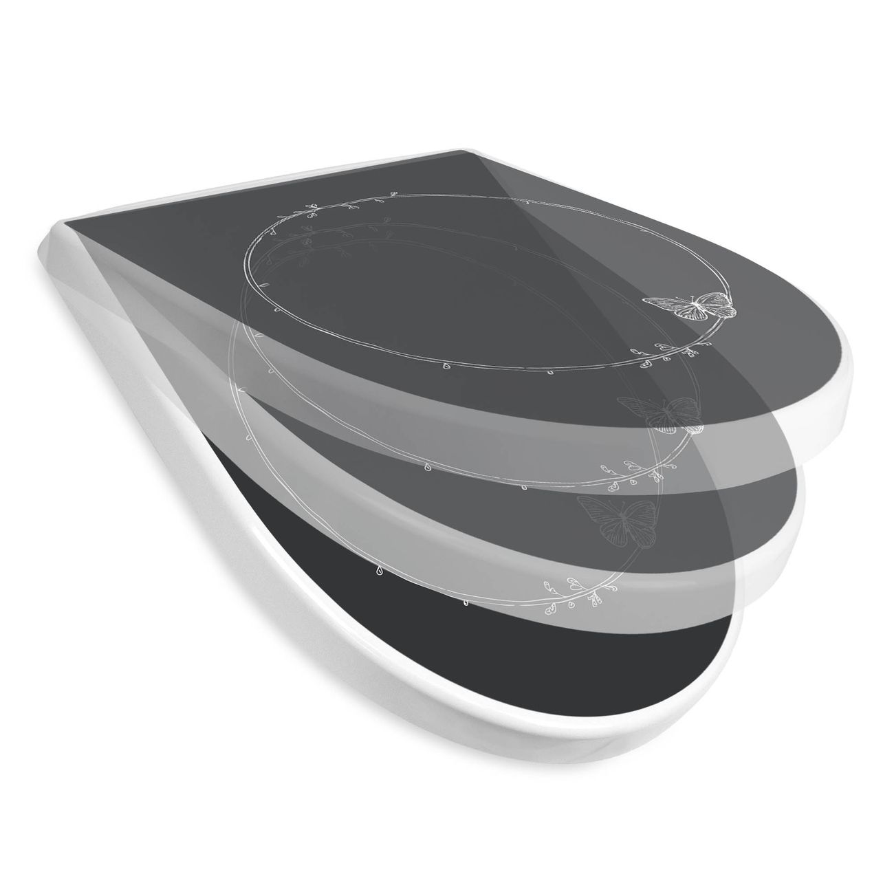 WC Sitz mit Absenkautomatik D Form Motiv Schmetterlingskranz