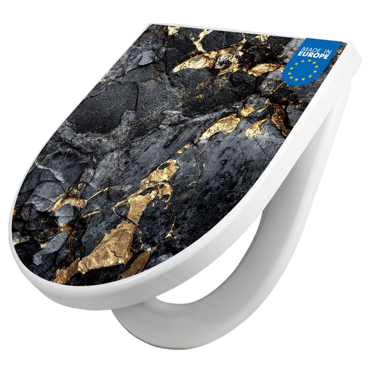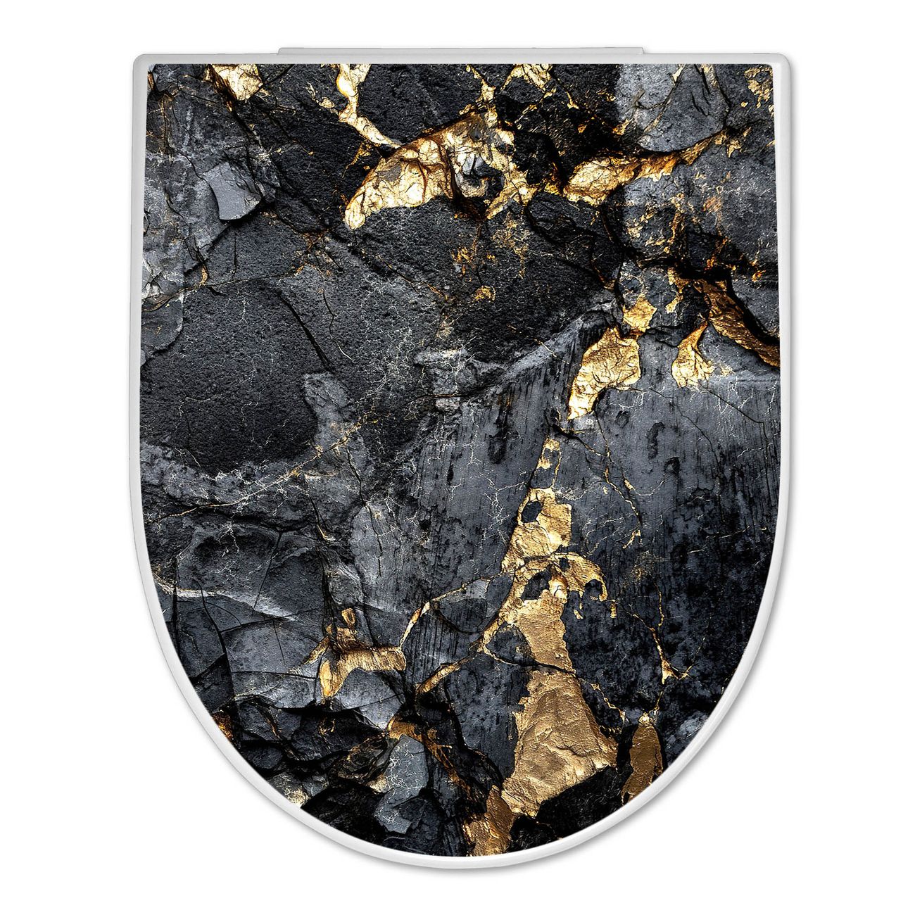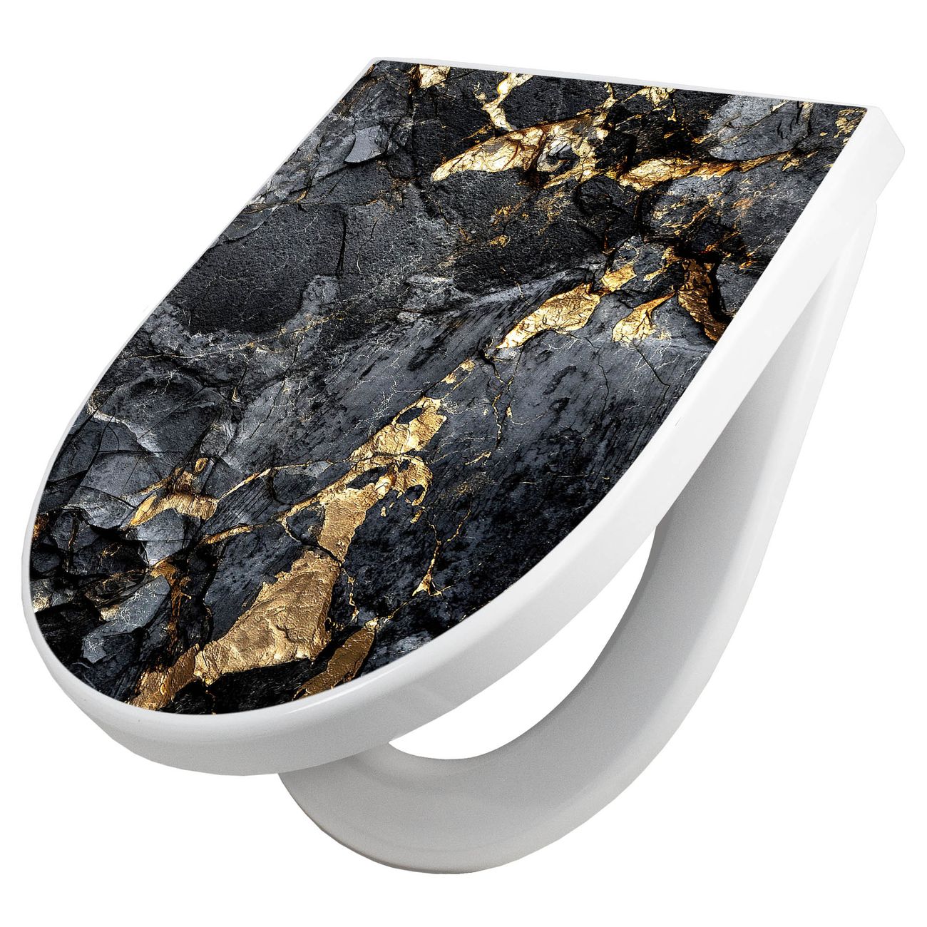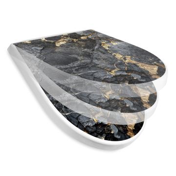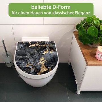 WC Sitz mit Absenkautomatik D Form Motiv Schwarzer Marmor mit Gold 1