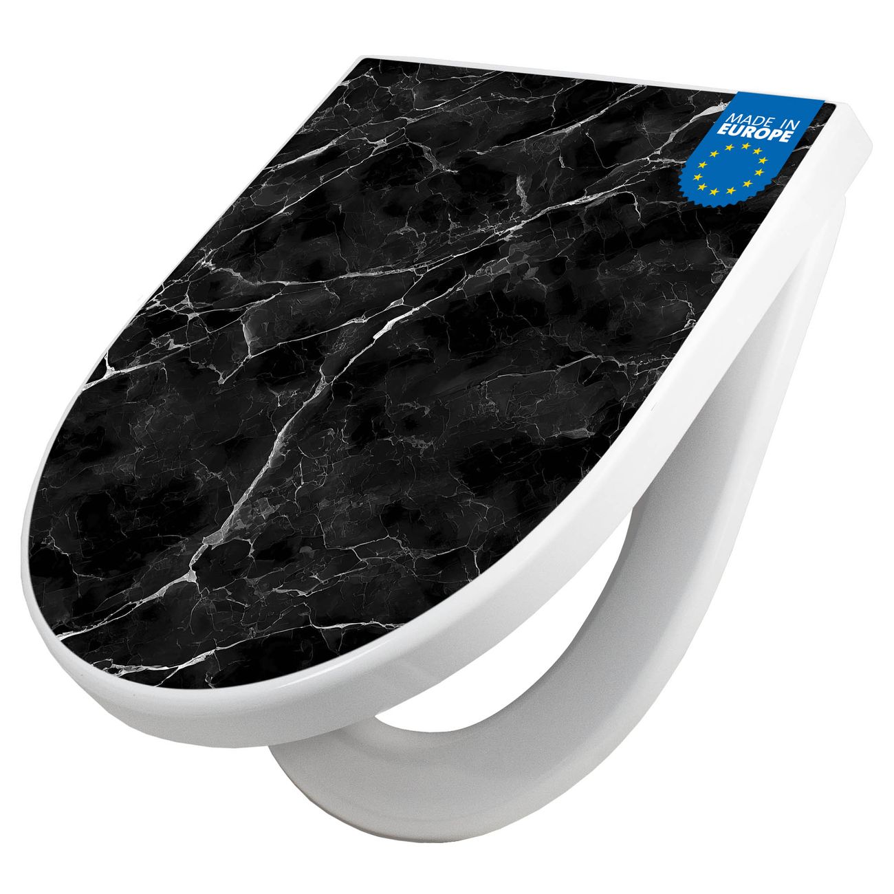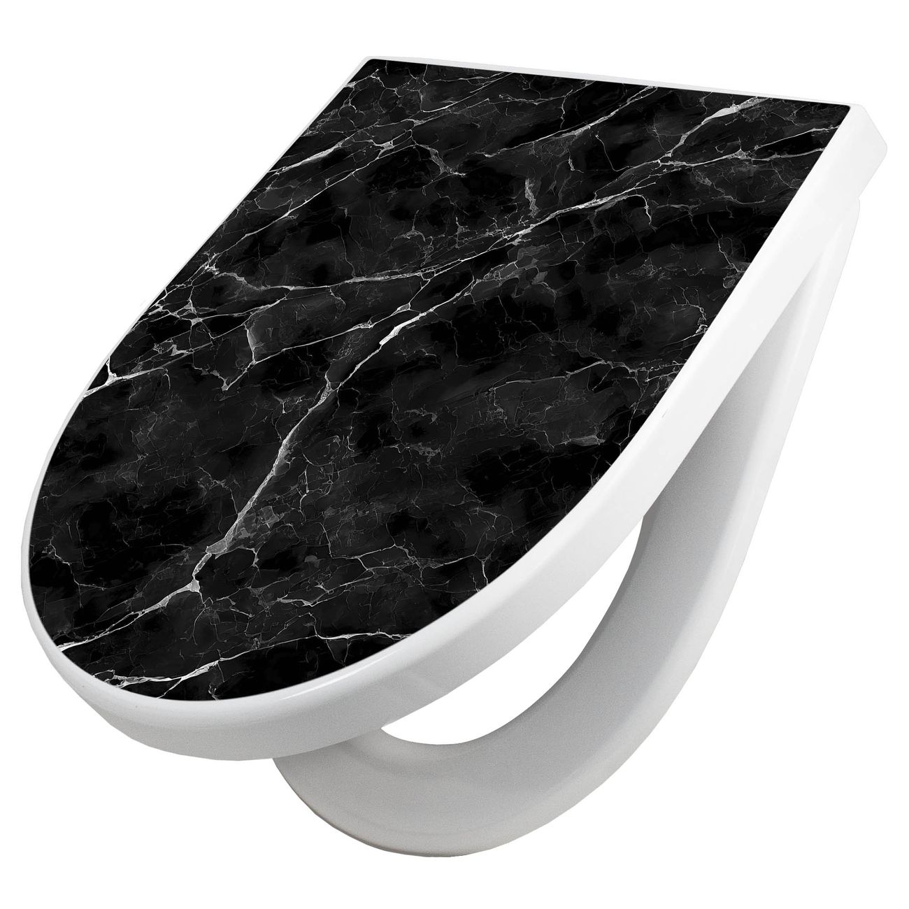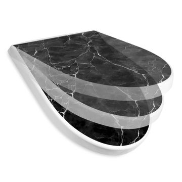 WC Sitz mit Absenkautomatik D Form Motiv Schwarzgrauer Marmor