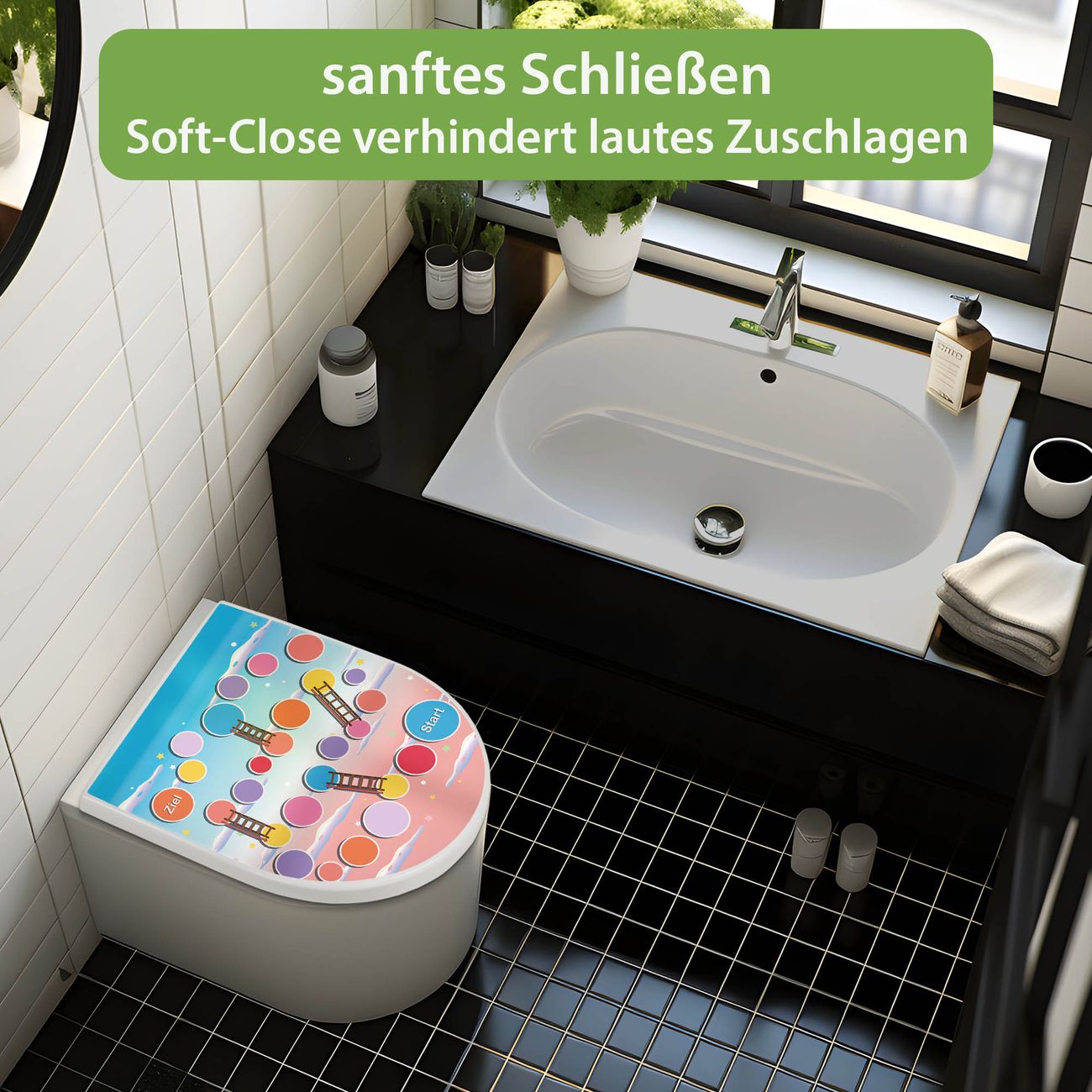 WC Sitz mit Absenkautomatik D Form Motiv Spielbrett 1