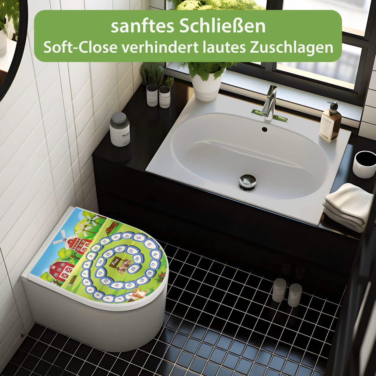 WC Sitz mit Absenkautomatik D Form Motiv Spielbrett 7
