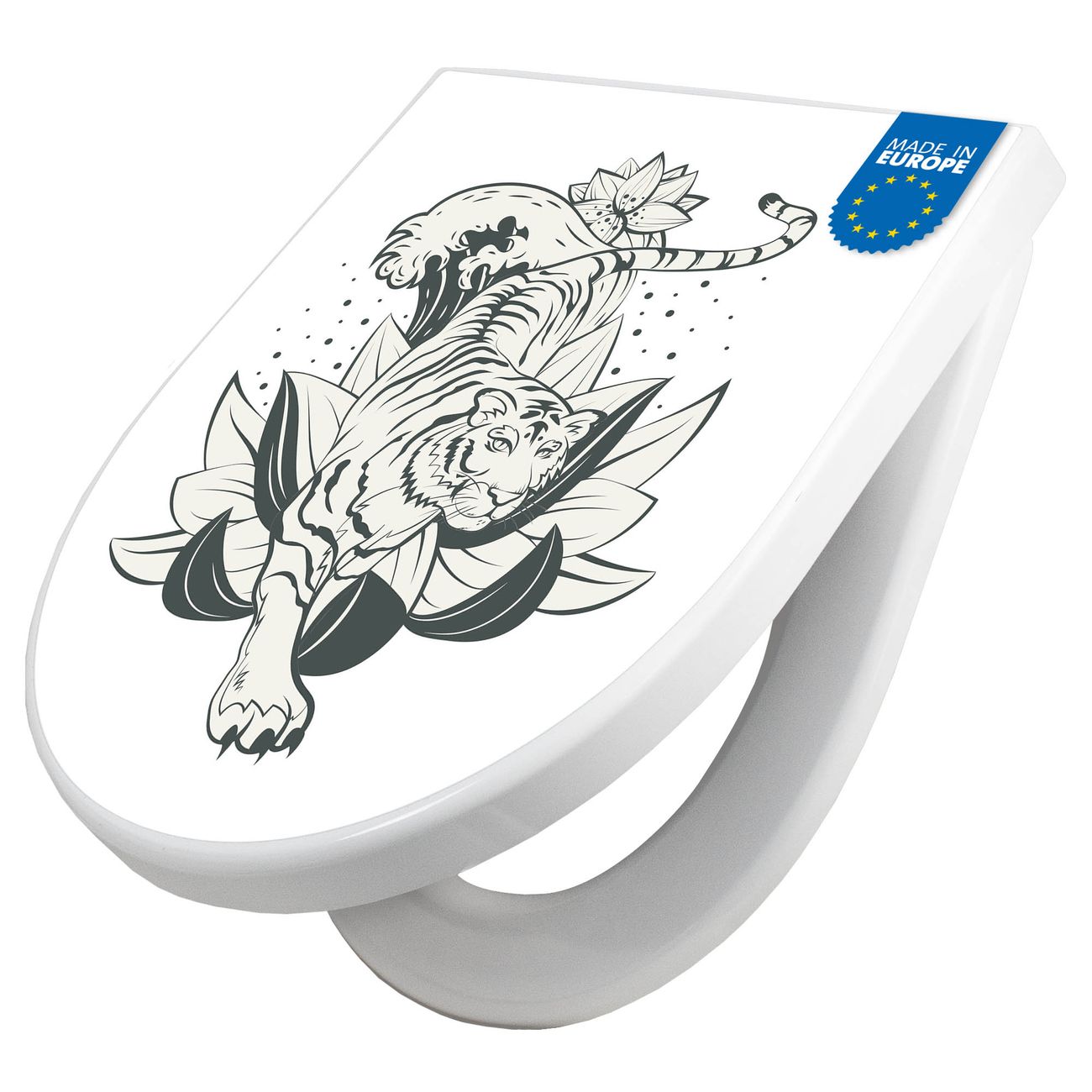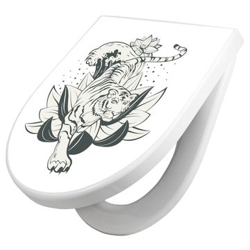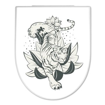 WC Sitz mit Absenkautomatik D Form Motiv Tiger und Lotusblüte
