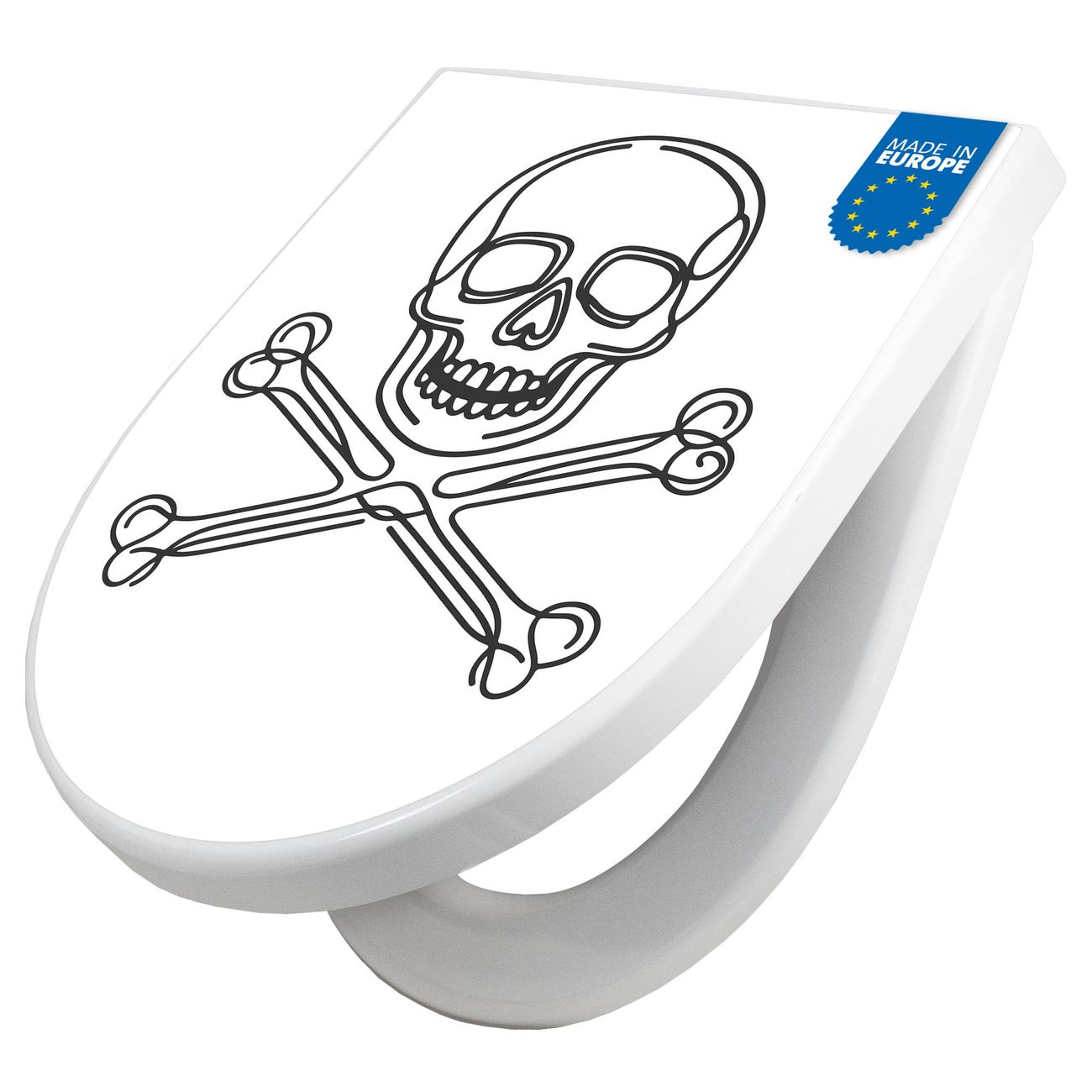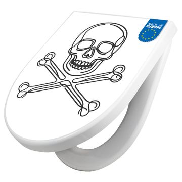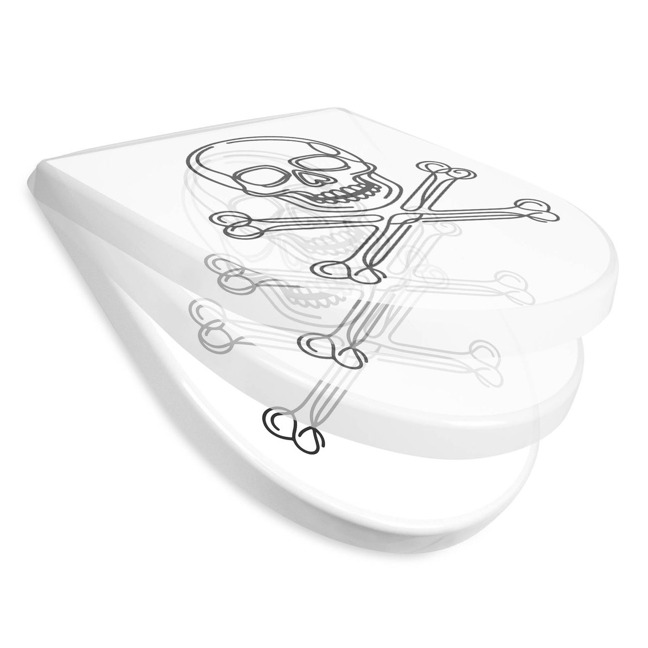 WC Sitz mit Absenkautomatik D Form Motiv Totenkopf und Knochen