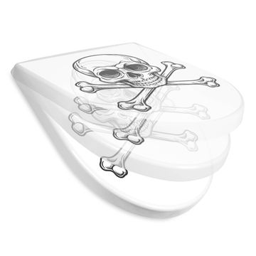 WC Sitz mit Absenkautomatik D Form Motiv Totenkopfsymbol