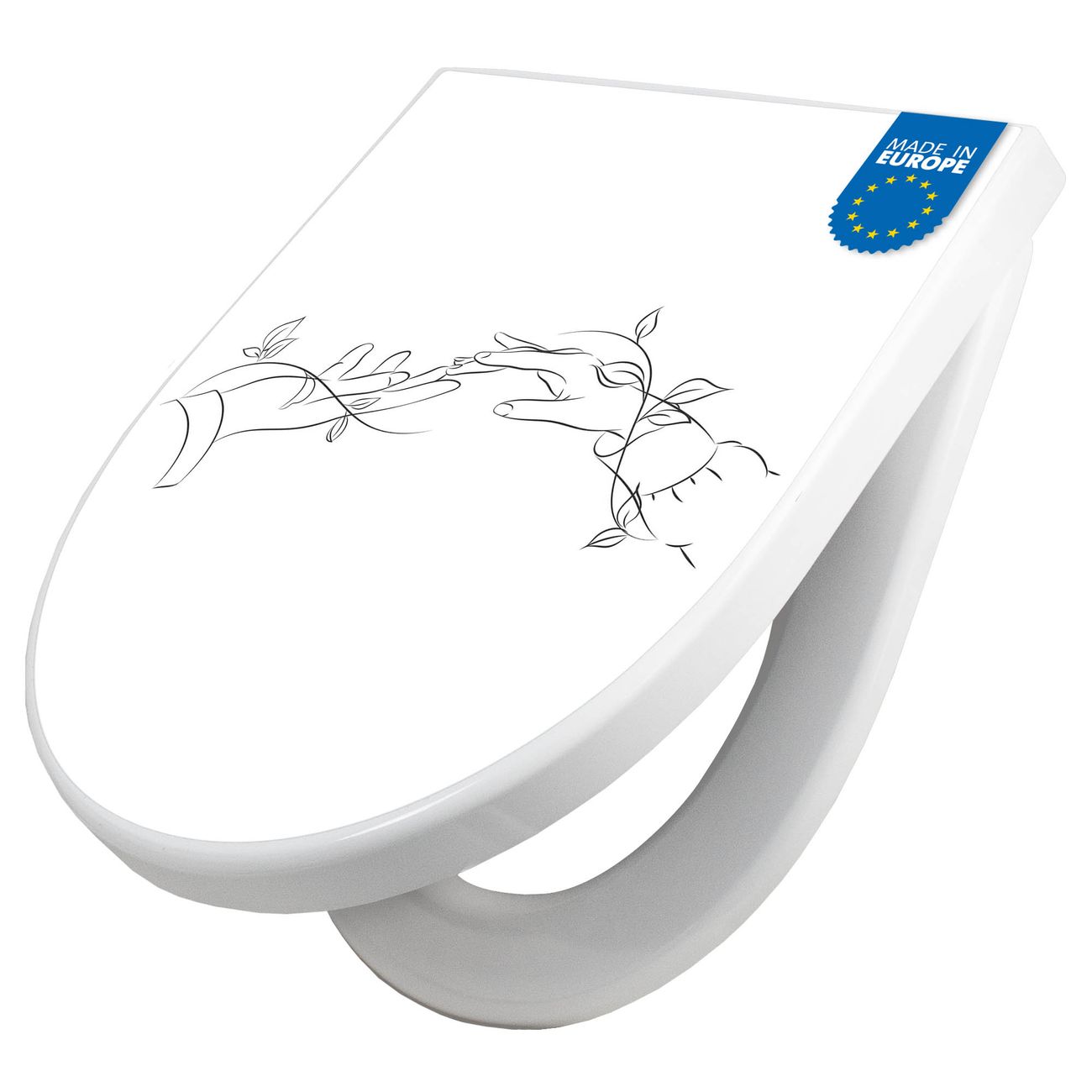 WC Sitz mit Absenkautomatik D Form Motiv Verbindende Hände Lineart