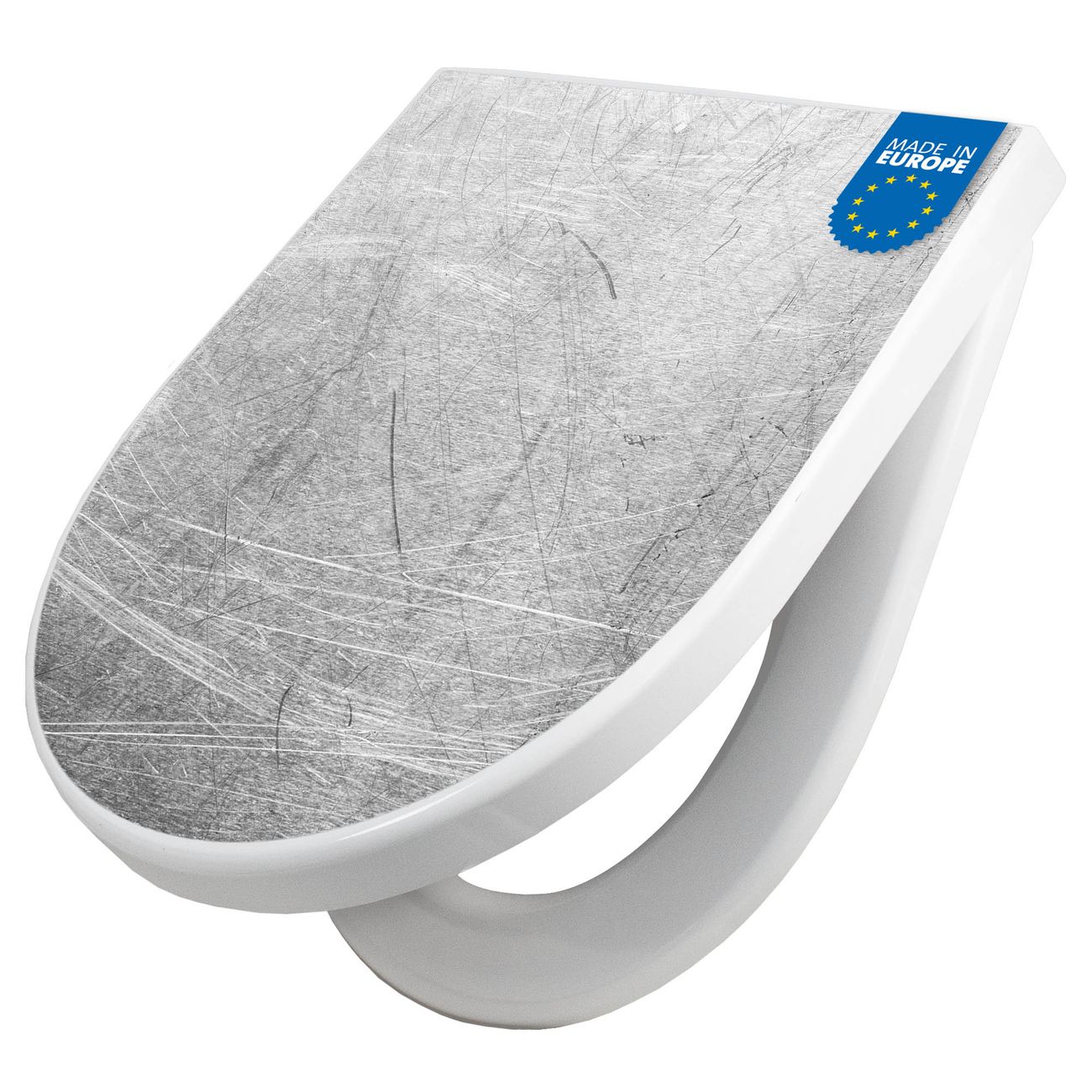 WC Sitz mit Absenkautomatik D Form Motiv Verkratztes Metall Grau