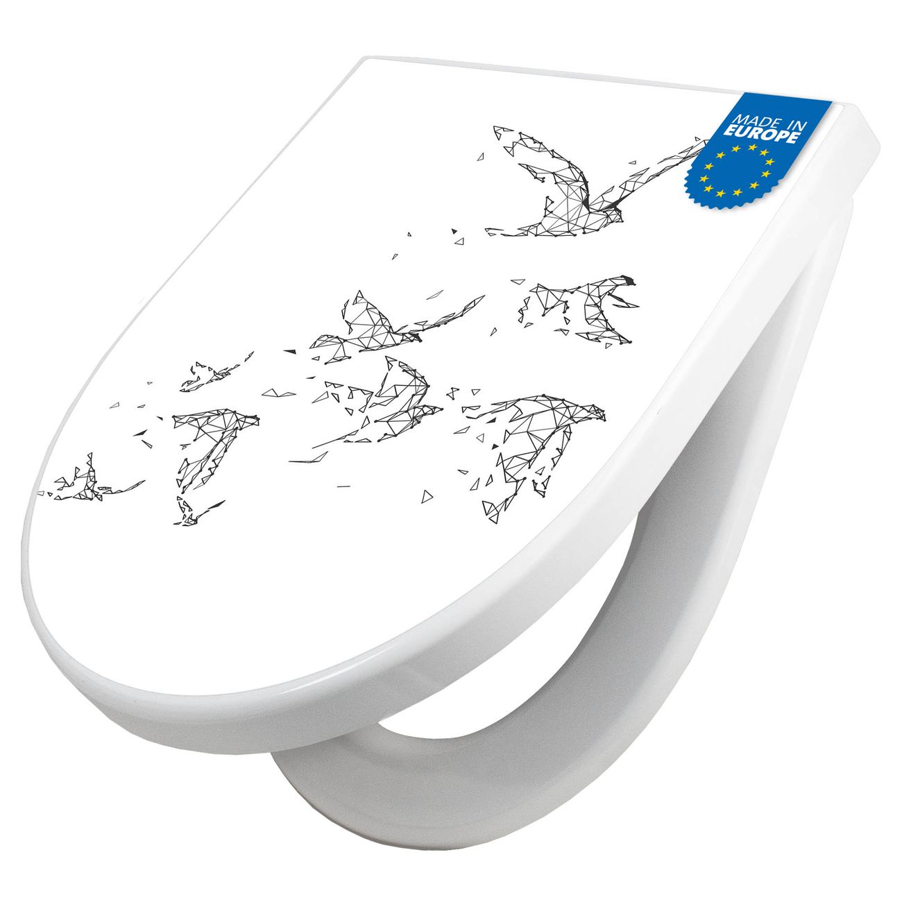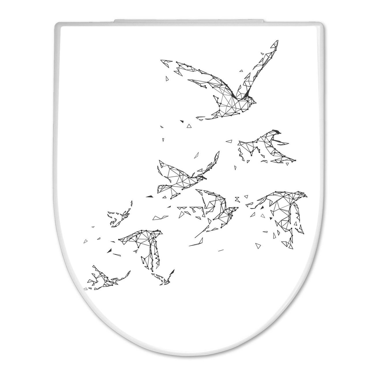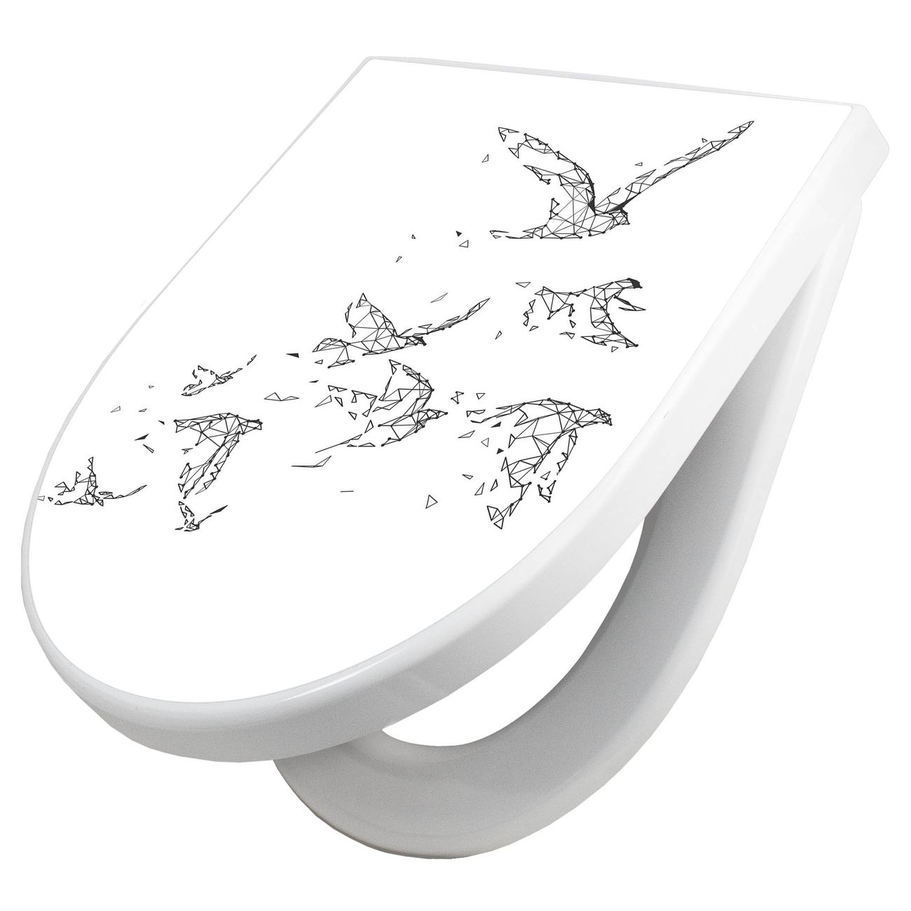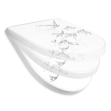 WC Sitz mit Absenkautomatik D Form Motiv Vögel abstrakt 2