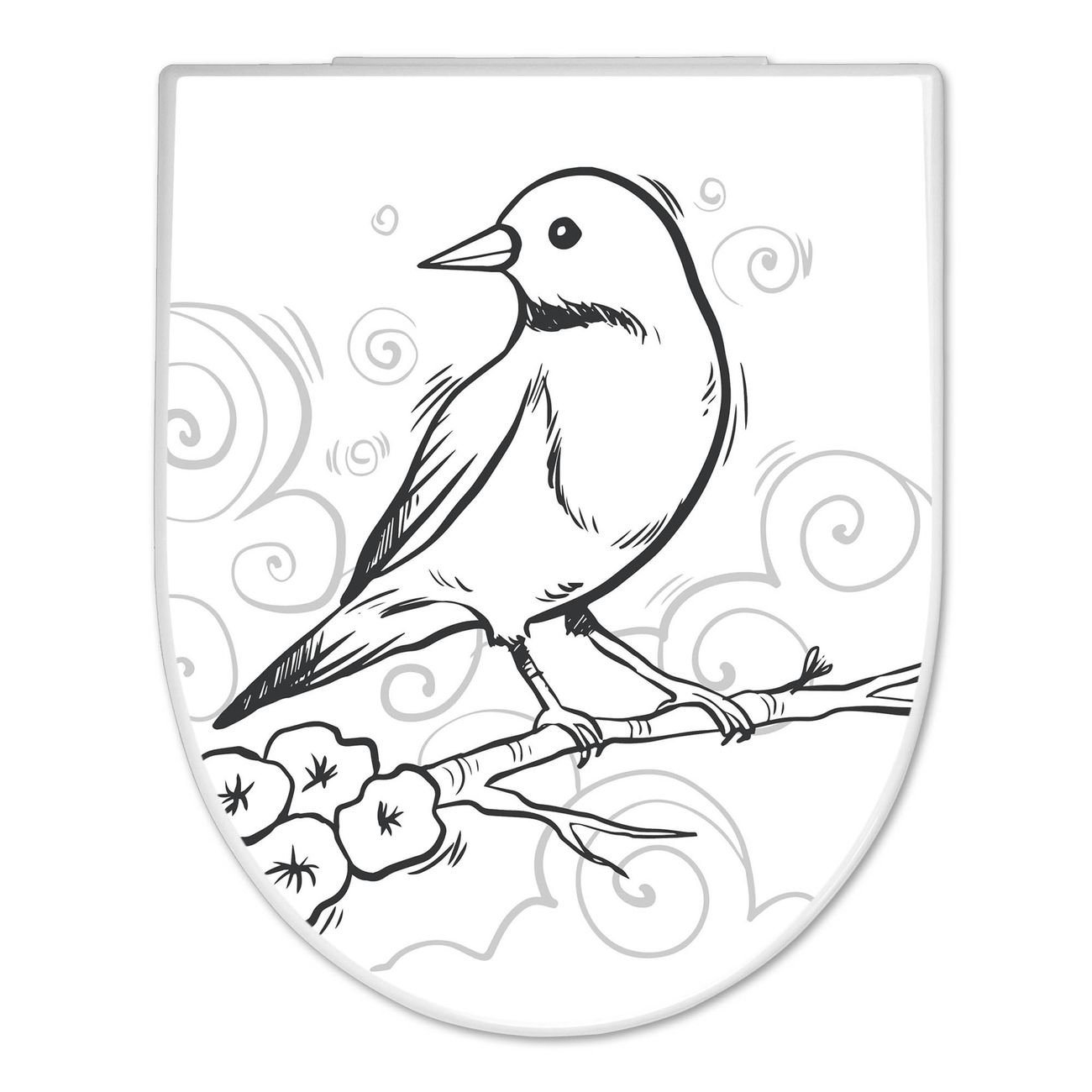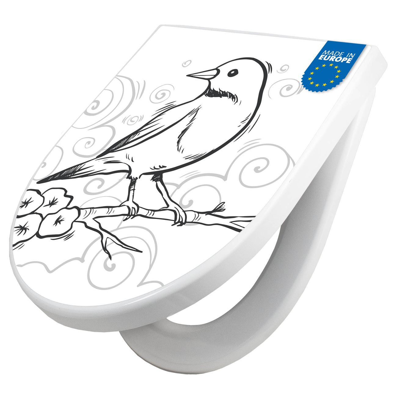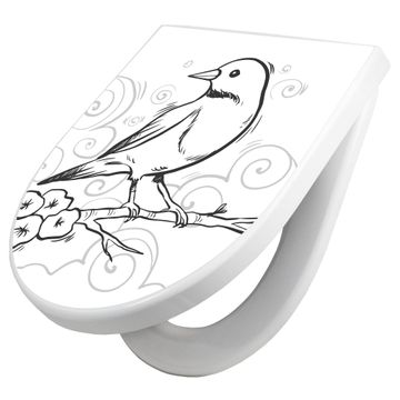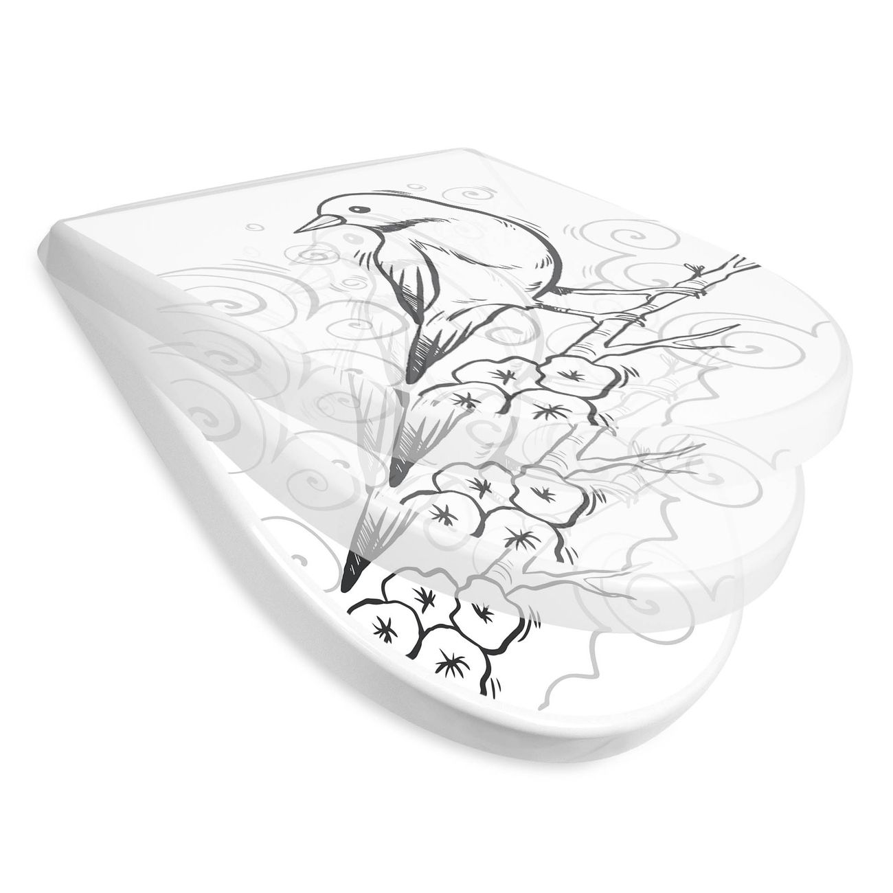 WC Sitz mit Absenkautomatik D Form Motiv Vogel auf Blütenzweig